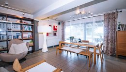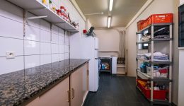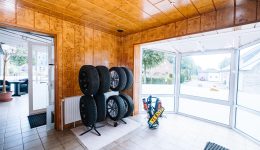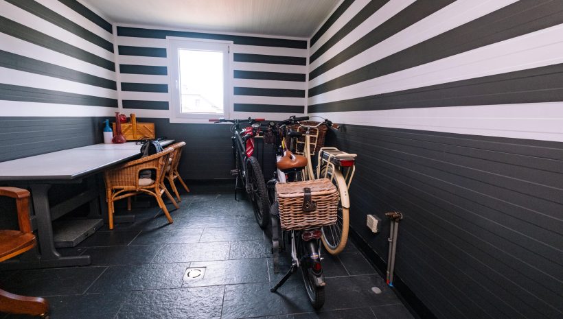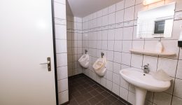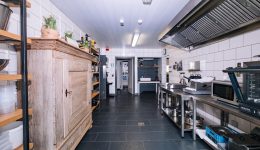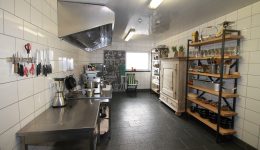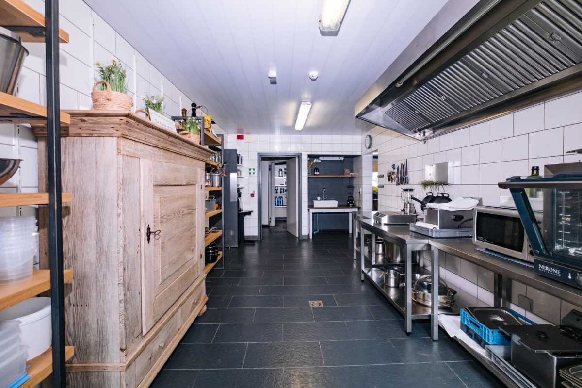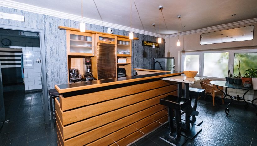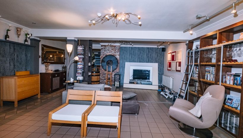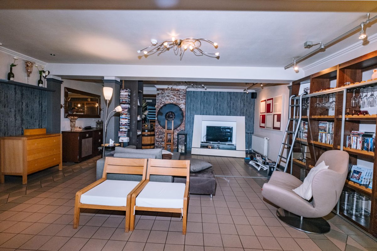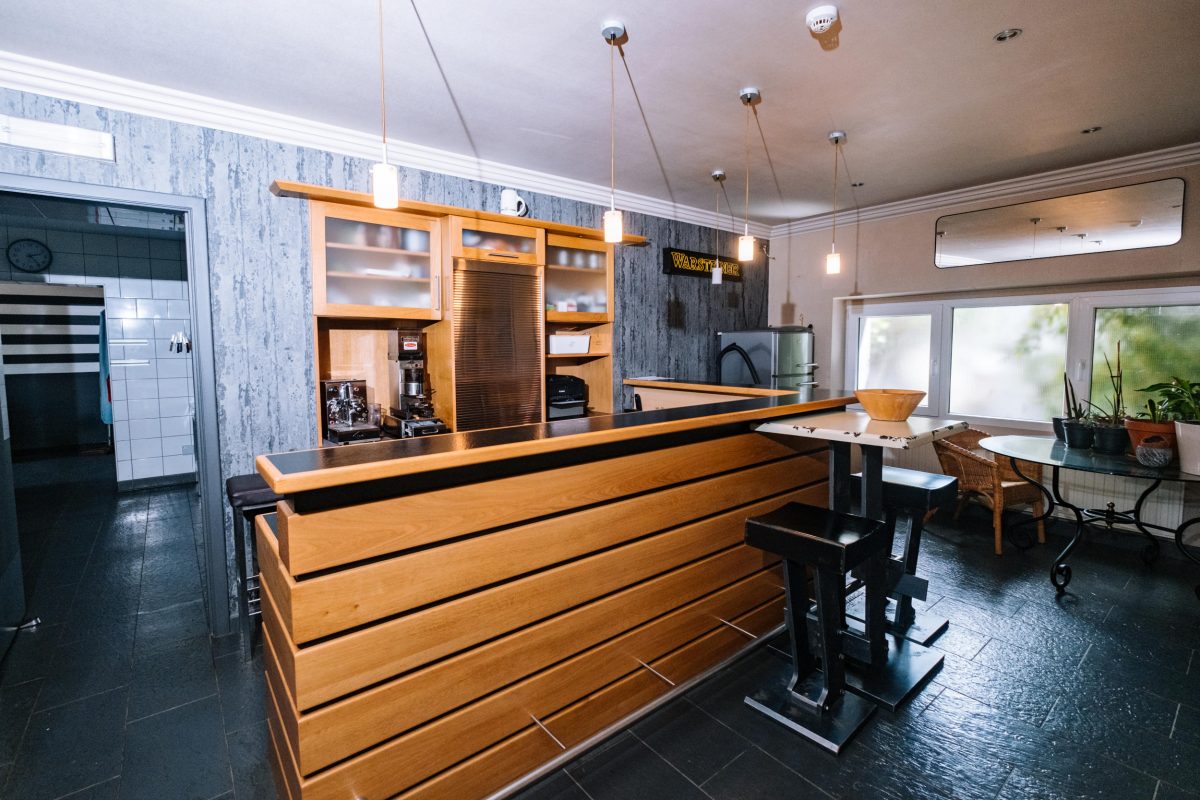 Das Gebäude erstreckt sich über mehrere Etagen und eignet sich für verschiedene Nutzungskonzepte. Im Erdgeschoss befinden sich eine Veranda, ein weitläufiger Wohnbereich, ein einladender Barbereich mit Theke sowie eine ehemalige Gastronomieküche mit dazugehörigen Räumen wie Kühlraum, Abstellraum und Waschküche. Auch separate Damen- und Herrentoiletten sind vorhanden. Zudem gehört ein kleiner, aber schöner Garten zum Anwesen, der zusätzlichen Raum für Entspannung bietet.