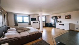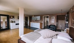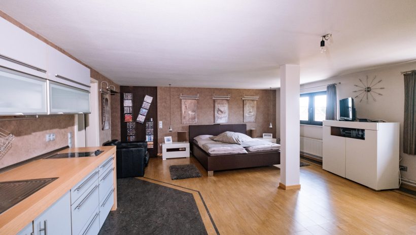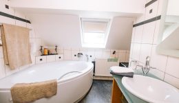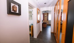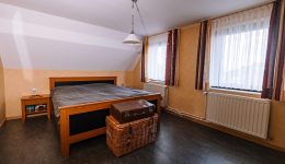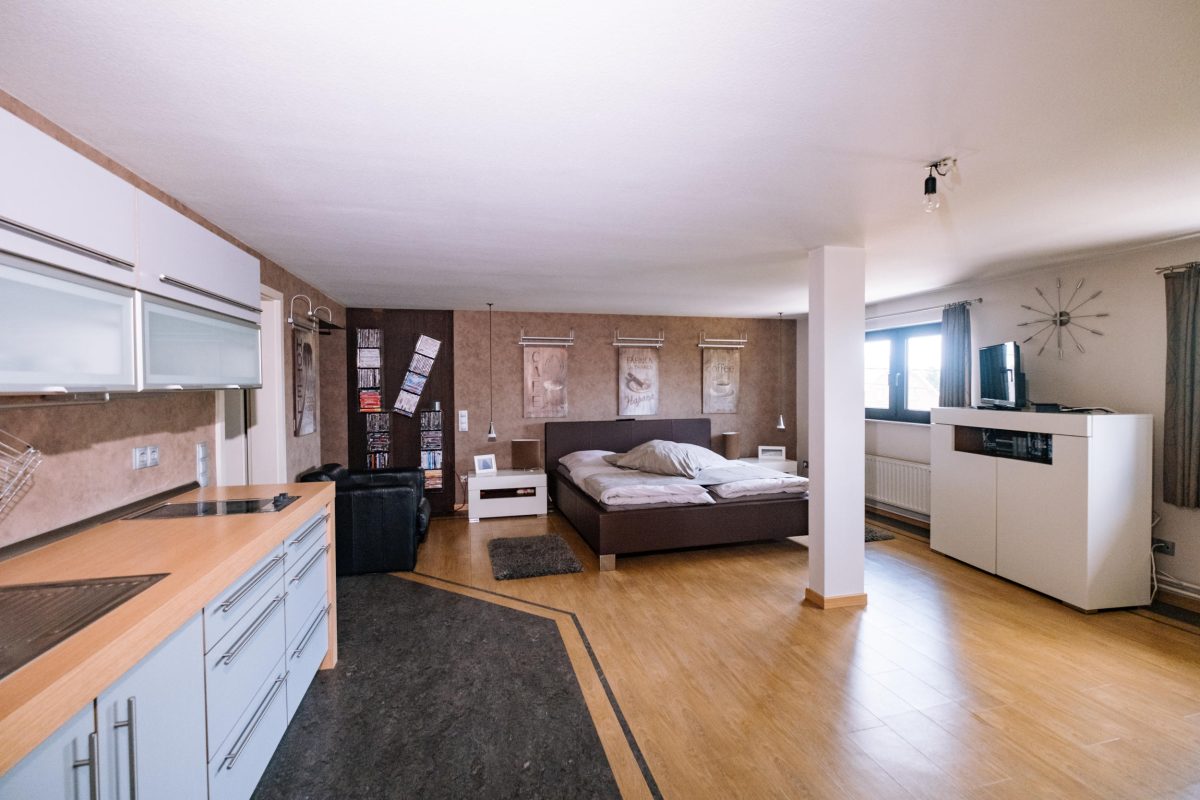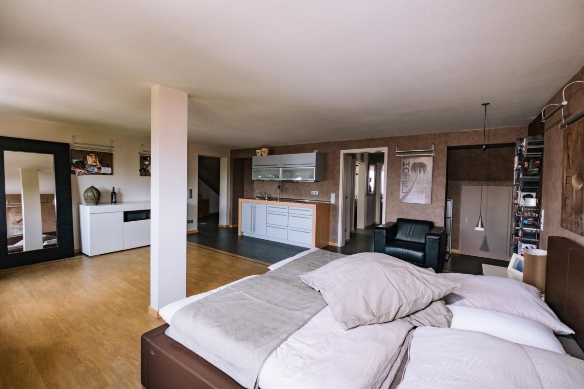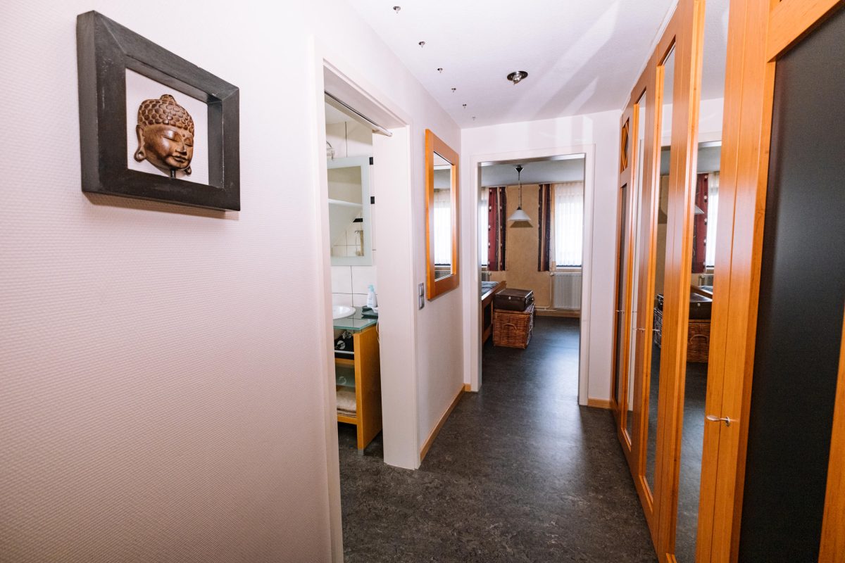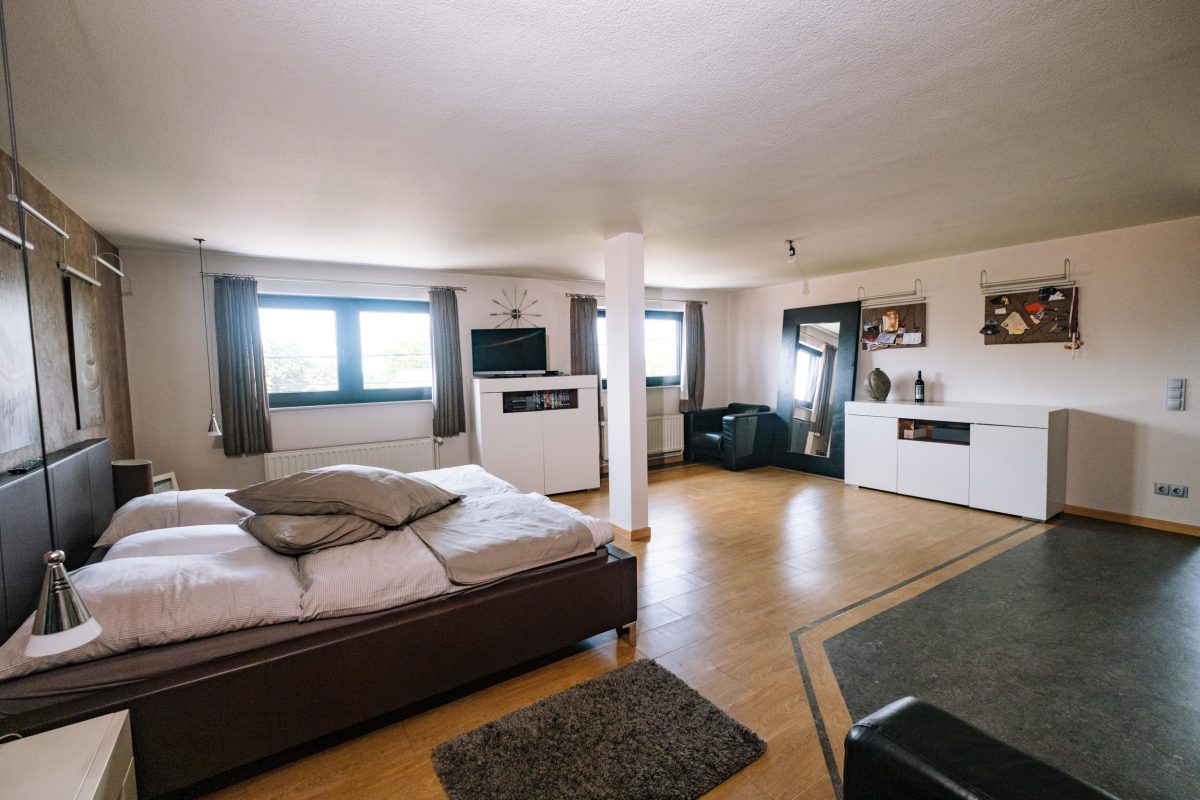 In den oberen Stockwerken verteilen sich insgesamt 5 Schlafzimmer, jeweils mit eigenem Badezimmer, eine zusätzliche Küchenzeile sowie weitere Räume, die flexibel genutzt werden können. Die Immobilie ist unterkellert und verfügt über eine Öl-Heizung der Marke Buderus (2016). Der aktuelle Energieausweis bezieht sich auf die zweite Etage, da die übrigen Bereiche zuvor gewerblich genutzt wurden.