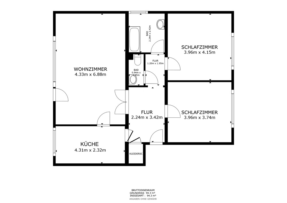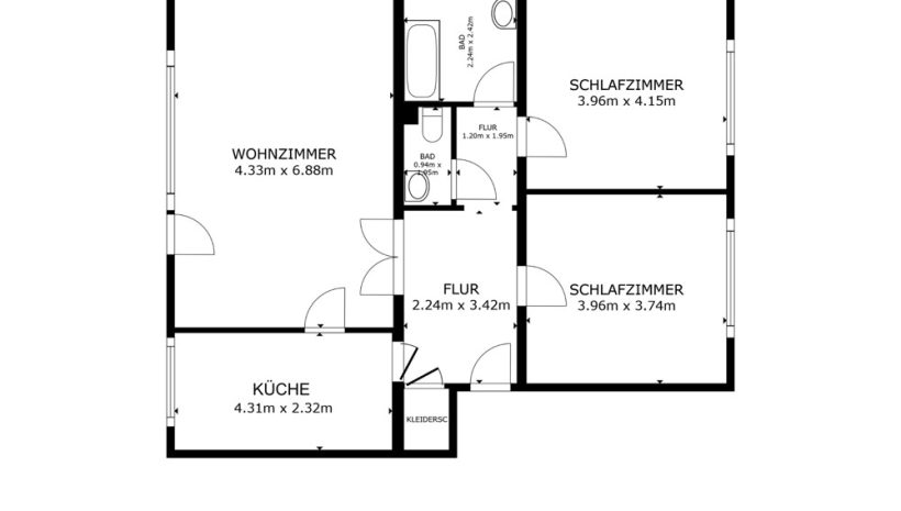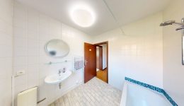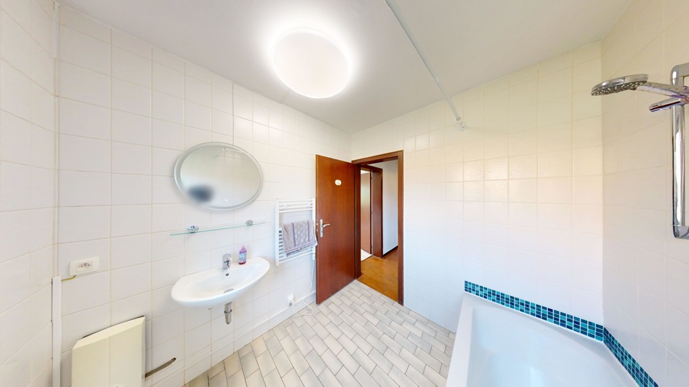 Die Wohnung umfasst insgesamt drei Zimmern, darunter zwei gemütliche Schlafzimmer, ausserdem bietet die Wohnung ausreichend Platz für Paare oder kleine Familien. Das Badezimmer ist ein Tageslichtbad. Die Toilette ist separat untergebracht.