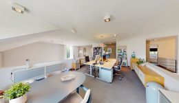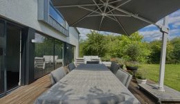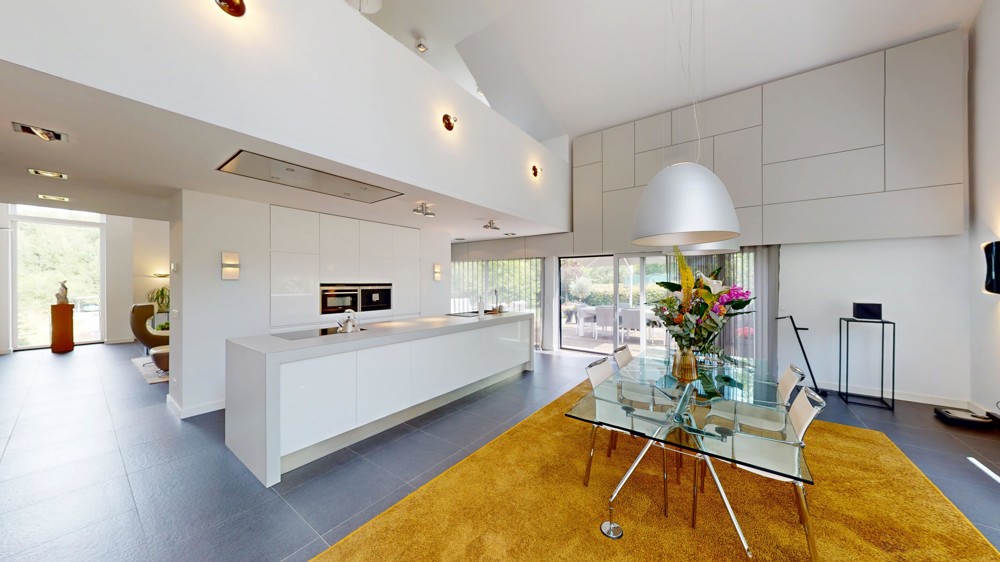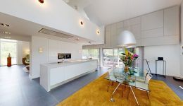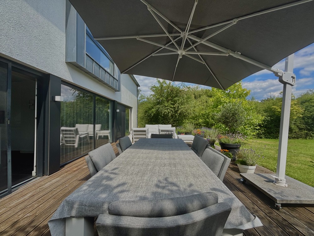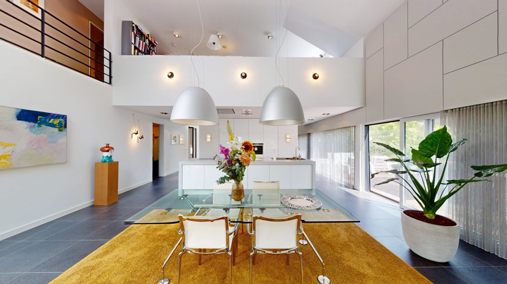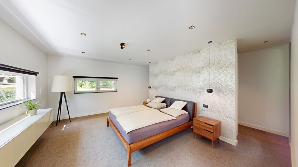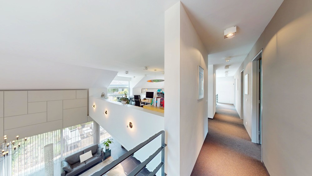 Mit einer Wohnfläche von circa 279 m² und zusätzlichen Nutzflächen von rund 128 m² präsentiert sich das Haus äußerst geräumig und vielseitig. Insgesamt stehen sechs Zimmer zur Verfügung, darunter fünf einladende Schlafzimmer, die Ihnen und Ihrer Familie geruhsame Nächte garantieren. Zwei elegante Badezimmer vervollständigen das exklusive Raumangebot und bieten ausreichend Raum für jeden Morgenbedarf. Ein absolutes Highlight ist die lichtdurchflutete und „schwebende“ Gallergie zentral im Haus.