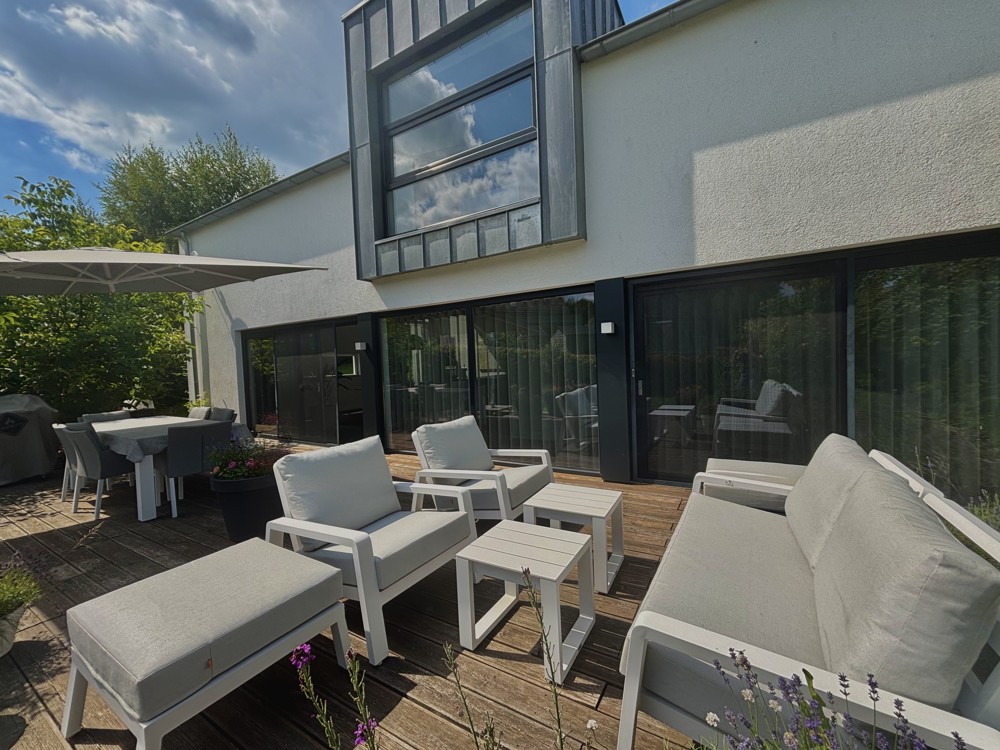 Diese Immobilie ist nicht nur ein Haus, sondern ein stilistisches Zuhause, mit garantiertem AHA-Effekt. Der optimal gestaltete Grundriss bietet Platz für alle Lebenslagen und Gelegenheiten – sei es ein großes Familienessen, ein entspannter Abend im Wohnzimmer oder die Verwirklichung individueller Wohnträume. Jedes Detail des Hauses ist darauf ausgerichtet, den Alltag harmonisch und mühelos zu gestalten.