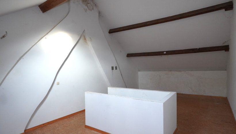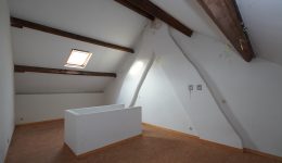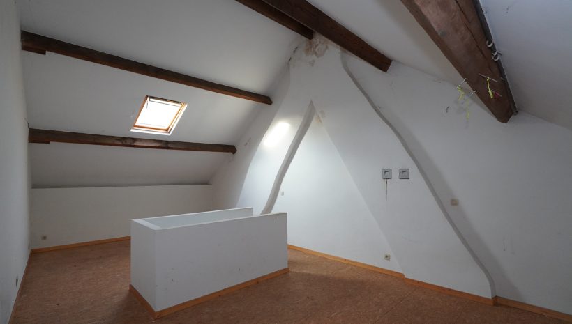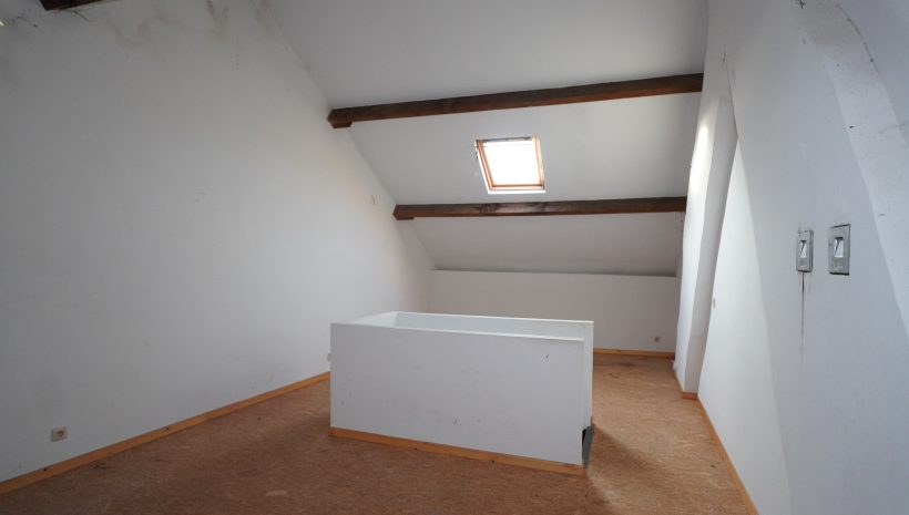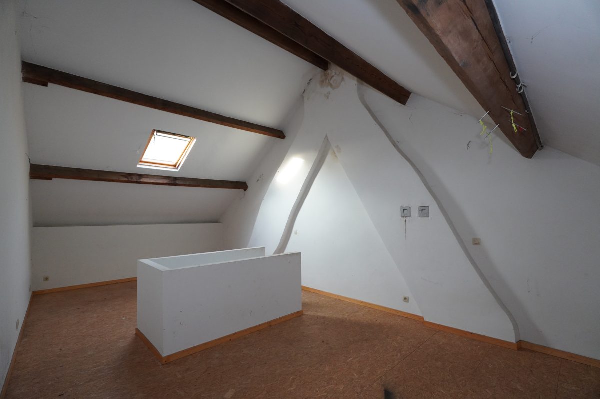 Der zweite Stock besteht aus einem geräumigen Schlafzimmer (33 m²), das von der schönen Höhe unter dem Dach profitiert und in mehrere Wohnräume umgewandelt werden könnte.