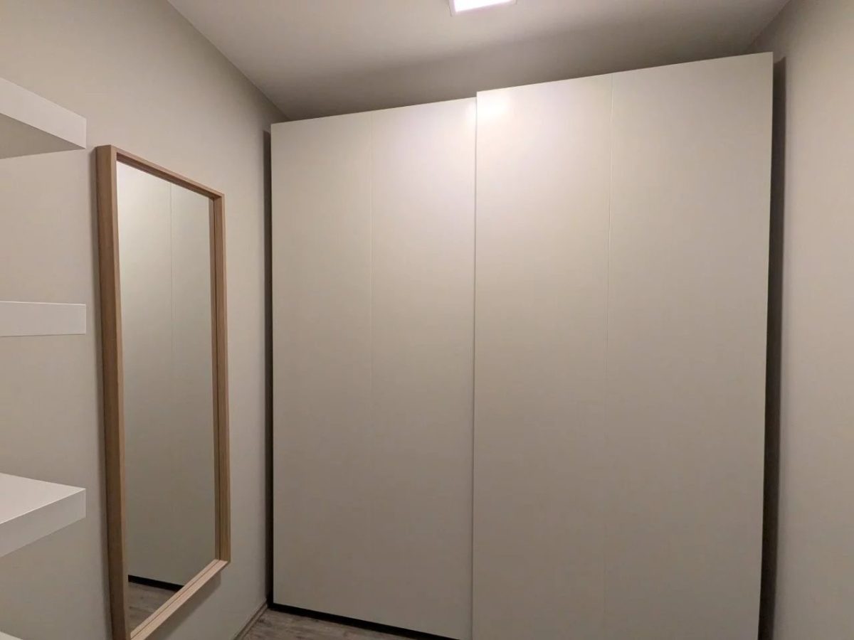 Im Mietpreis enthalten sind eine hochwertige, exklusive Einbauküche mit Theke, zwei dazu passende Wohnzimmerschränke, diverse Spots und Deckenlampen, eine neuwertige Waschmaschine sowie ein Einbauschrank im Ankleideraum.