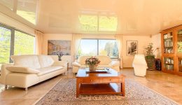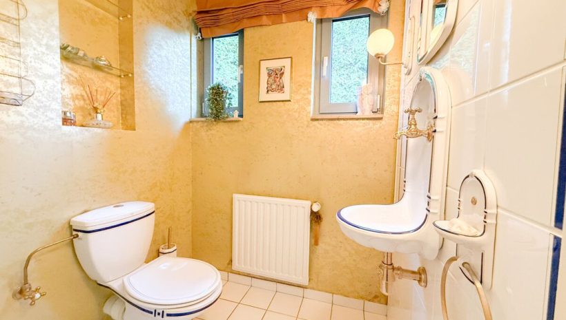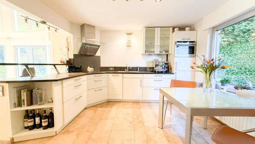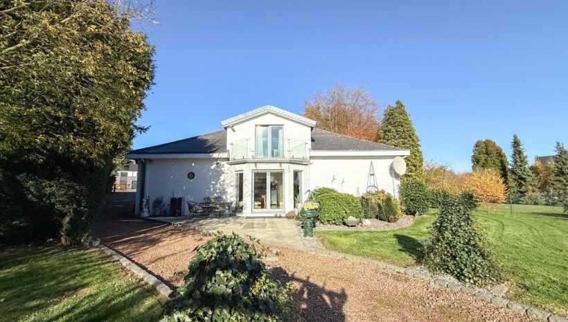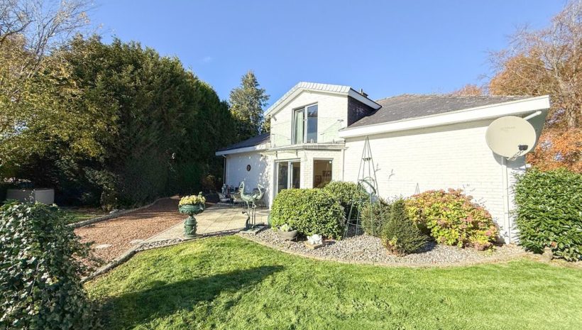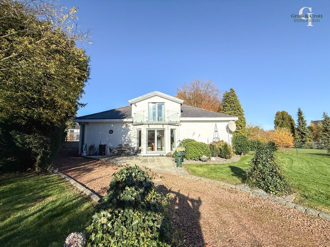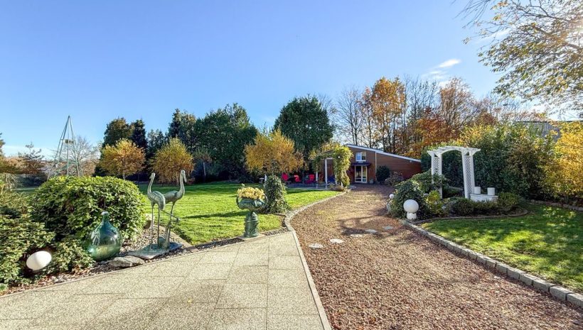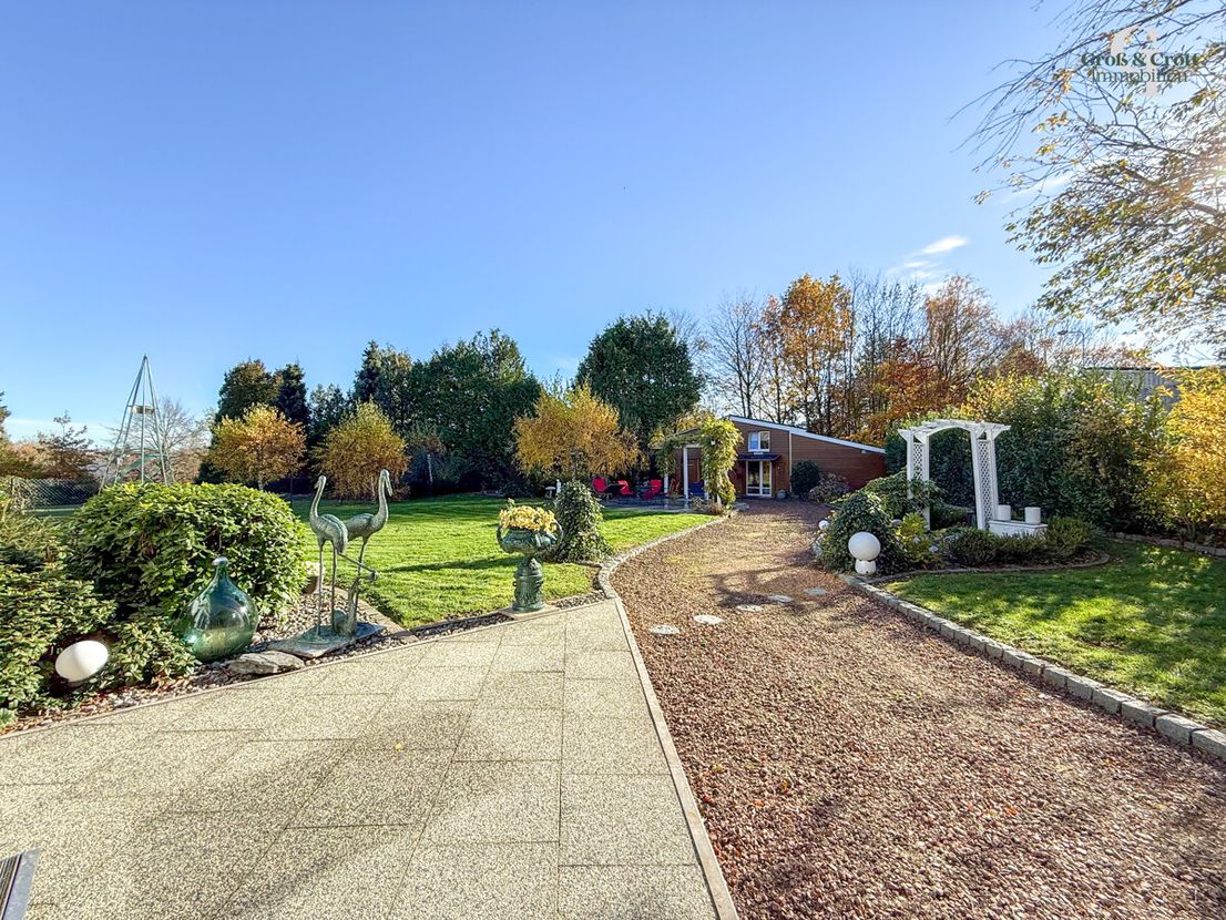 Zum Verkauf steht der hintere, äußerst hochwertige Teil eines gepflegten Doppelbungalows – ein stilvolles Wohnensemble mit separatem Gästehaus, das sich auf einem vollkommen uneinsehbaren Grundstück in ruhiger Lage von Baelen, nahe der Aachener Grenze, befindet. Bereits beim Betreten des Anwesens wird deutlich, dass Privatsphäre und Wohnqualität hier höchste Priorität genießen.