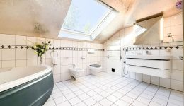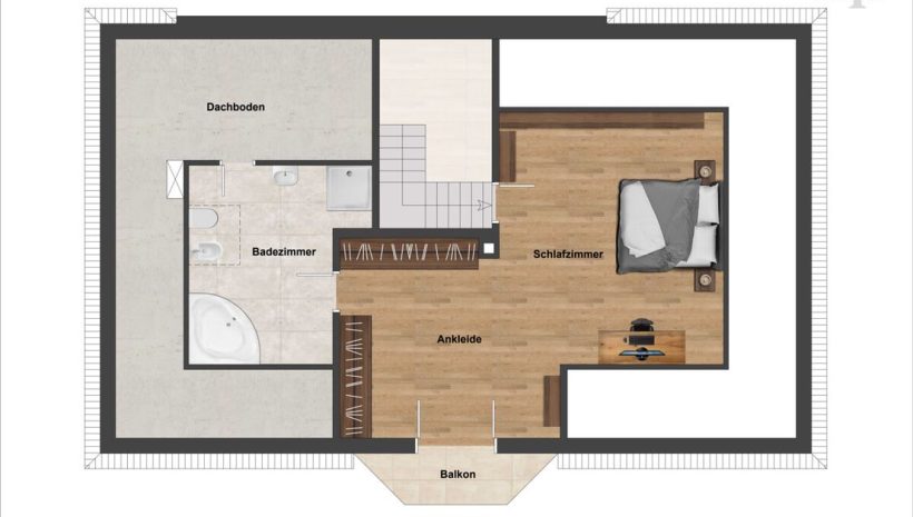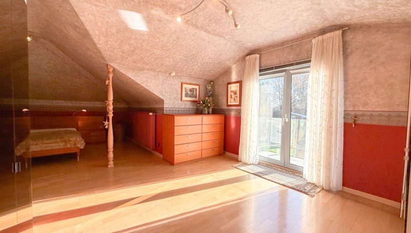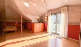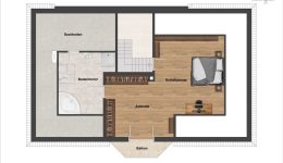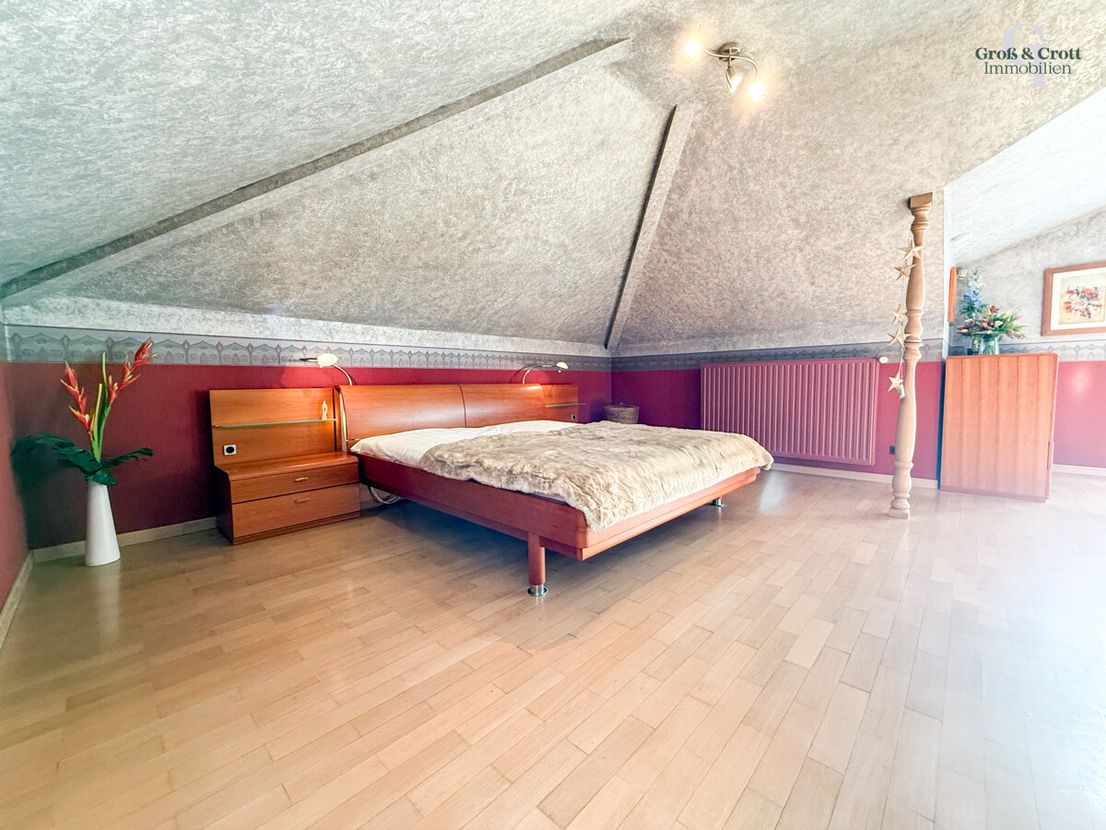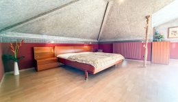 Im OG befindet sich der private Rückzugsbereich des Hauses: ein komfortables Schlafzimmer mit angeschlossenem Ankleidebereich, ein Badezimmer sowie ein kleiner Balkon, der einen schönen Ausblick in den Garten bietet. Zusätzlich besteht von hier aus ein praktischer Zugang zum Dachboden, der großzügigen Stauraum bietet und mit Einbauschränken ausgestattet ist.