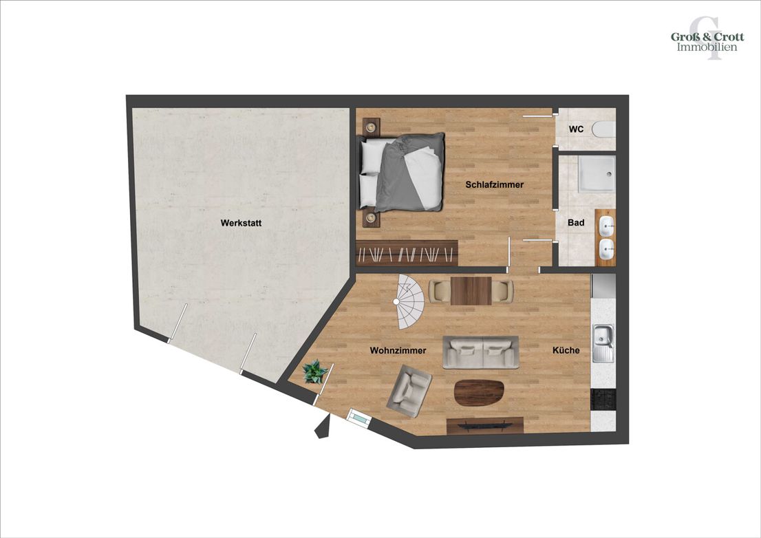 Hinweis zur Provisionszahlung: Mit notarieller Beurkundung sind vom Käufer 3,57% Provision (inkl. Mehrwertsteuer) vom beurkundeten Verkaufspreis der Immobilie an Groß & Crott Immobilien zu zahlen.