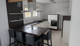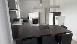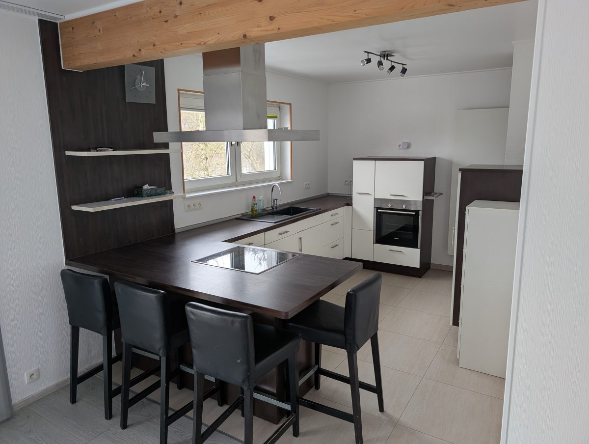 Es gibt einen offenen Küchen- und Wohnbereich, der ein angenehmes und modernes Wohngefühl vermittelt. Die Küche wurde 2010 erneuert und ist mit einer Spülmaschine sowie einem Backofen ausgestattet.