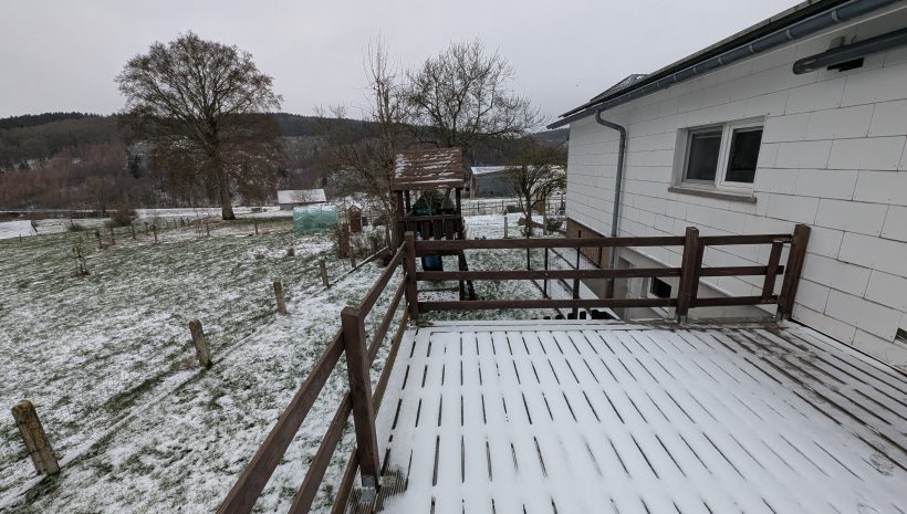 Auf der Südseite gibt es eine 4x4m große Terrasse mit einer tollen Aussicht ins Tal und einen Garten mit Gartenhäuschen.