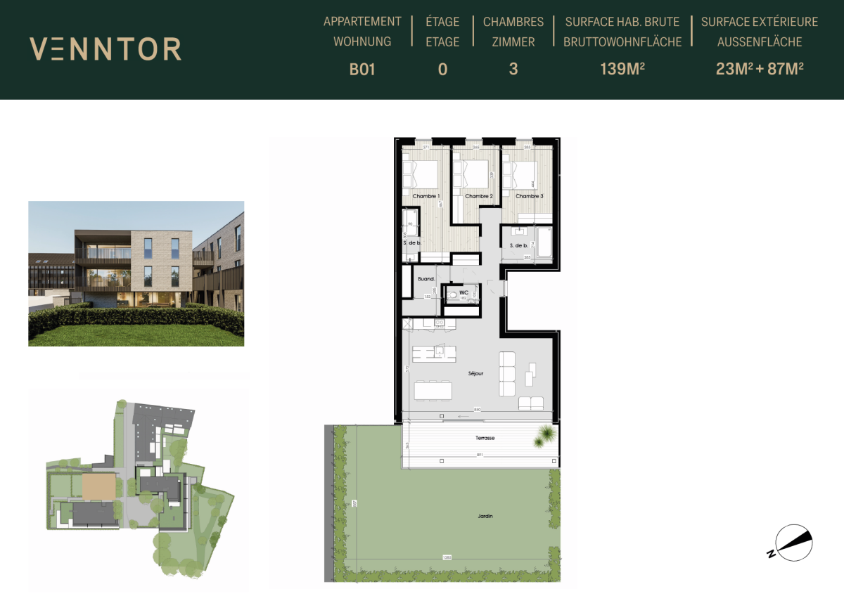– Ihr privater Rückzugsort: Jede Einheit verfügt über eine großzügige Sonnenterrasse. Manche Erdgeschosswohnungen bieten zusätzlich private Gärten.