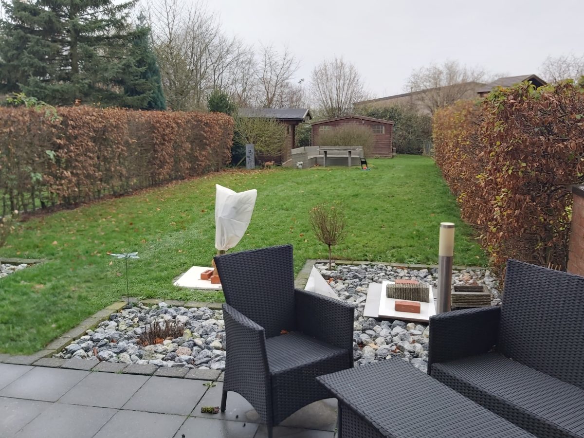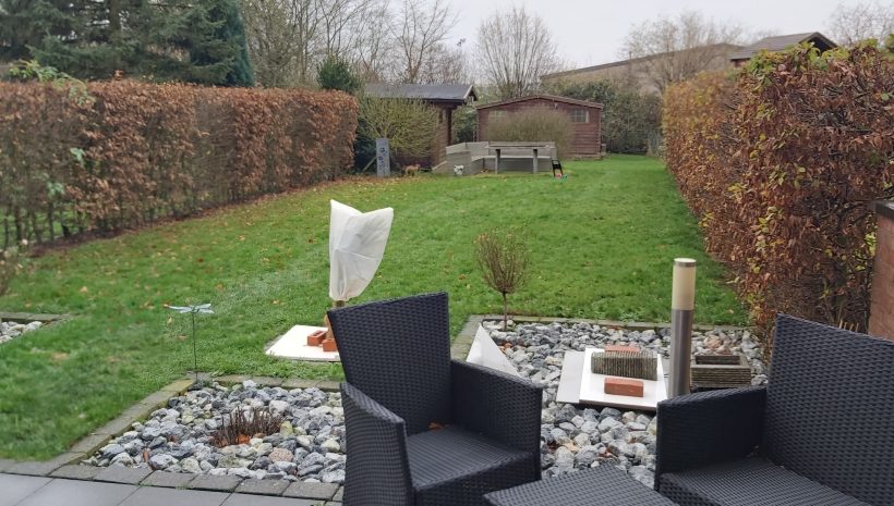 Beim Betreten des Hauses empfängt Sie ein heller Eingangsbereich mit Gäste-WC und Garderobenecke. Vom Eingangsbereich gelangt man in das großzügige Wohn- Esszimmer mit zum Wohnraum hin offener Küche mit Kochinsel und einer Gesamtfläche von ca. 43 m². Die großen Fenstertüren im Wohnraum und der Küche ermöglichen einen direkten Zugang auf die Terrasse und in den Garten. Der Garten, in Nord-Westlage, ist pflegeleicht mit schön gestaltetem Beet, zwei Gartenhäusern, großflächiger Terrasse (ca. 23,50 m²) angelegt.