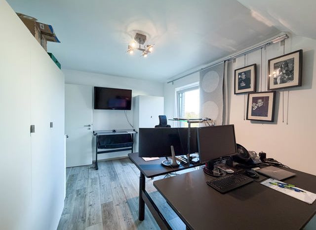 Im Erdgeschoss befinden sich eine helle Eingangshalle, ein separates WC sowie ein großzügiger und gemütlicher Wohnbereich mit komfortablem Wohnzimmer und voll ausgestatteter offener Küche, die funktional und modern gestaltet ist. Eine angrenzende Garage vervollständigt dieses Geschoss. Zusätzlich verfügt die Immobilie im Außenbereich über drei private Stellplätze, die einen hohen Komfort für mehrere Fahrzeuge oder Besucher bieten.