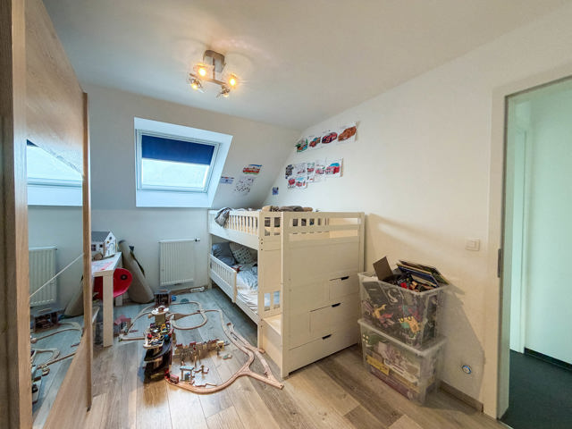 Im Obergeschoss stehen drei schöne Schlafzimmer sowie ein funktionales Badezimmer zur Verfügung. Ein großer Dachboden bietet umfangreichen Stauraum oder weiteres Ausbaupotenzial.