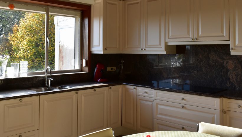 Besonderheiten: voll ausgestattete Küche, 34 Solarpaneele (Südseite des Daches), Veranda (16 m²), schöner Park, Möglichkeit zur (Um-)Gestaltung des Dachbodens (75 m² mit festem Fenster) und des Kellergeschosses (105 m²), Bushaltestelle 50 m entfernt, Schule 1,1 km entfernt und auf der Rückseite mit Blick auf das Naturschutzgebiet Kevie.