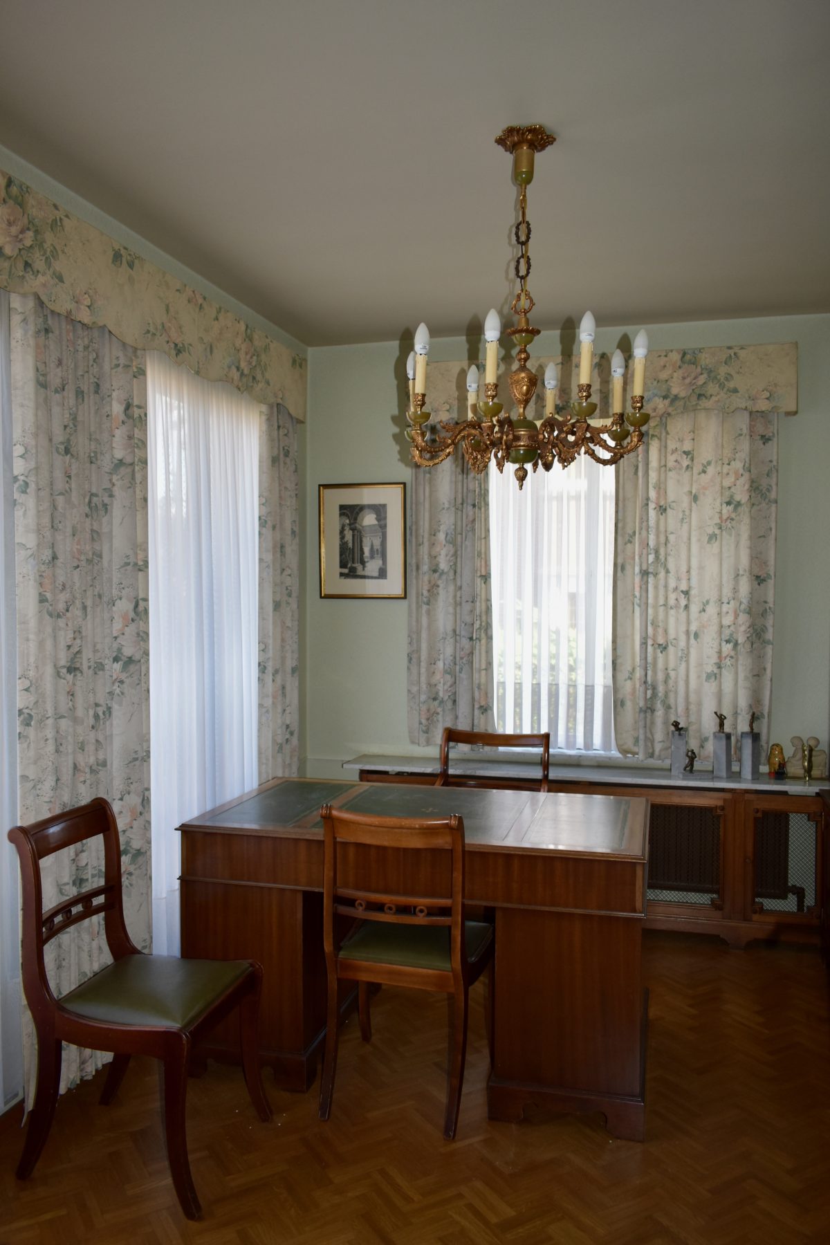 Das Haus verfügt über einen vollwertigen Keller (105 m²), der hintere Teil ist oberirdisch. Dank seiner Südausrichtung eignet es sich ideal als Praxis, Büro, Hobbyraum oder Atelier. Zum Haus gehören außerdem zwei integrierte Garagen und mehrere Außenstellplätze.