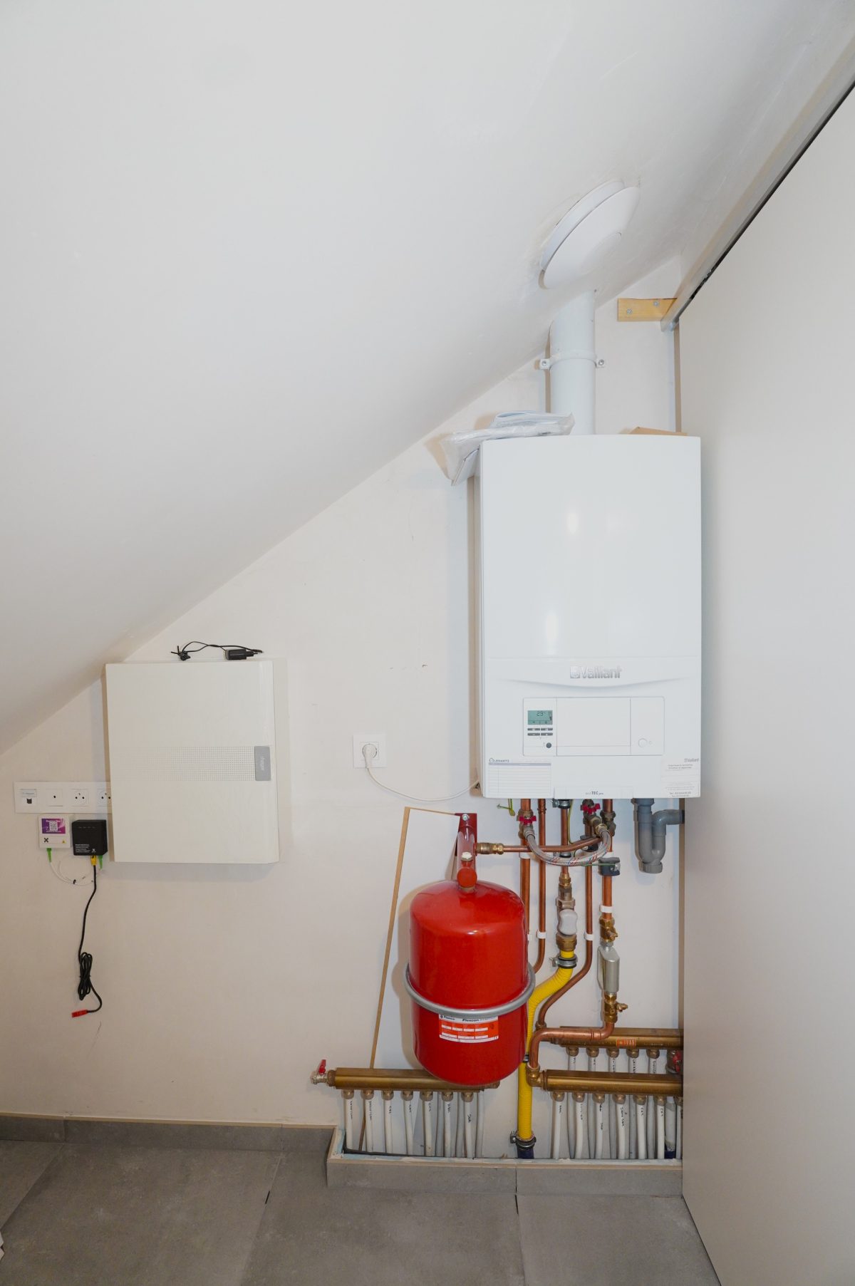 Das Gebäude ist nahezu neuwertig, die Fenster sind aus PVC-Doppelverglasung, die Elektroinstallation ist bis zum 31.03.2048 konform, und die Wohnung wird über eine Zentralheizung über Stadtgas beheizt. Die Lage im obersten Stockwerk sorgt für viel Ruhe und Licht. Alle Böden sind hochwertig gefliest, die Wände verputzt und in elegantem Weiß gehalten.