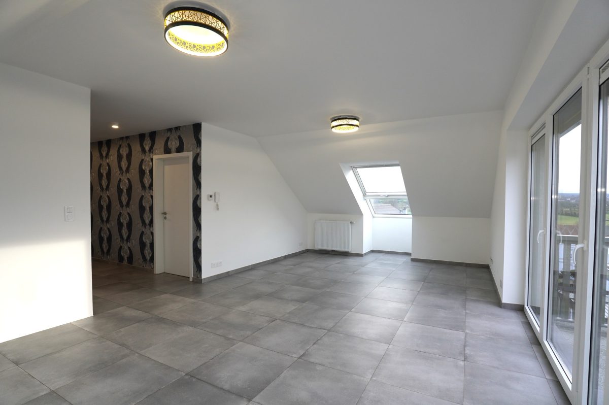 Wunderschöne, lichtdurchflutete Wohnung mit Balkon im 3. Stock des Gebäudes gelegen Lindenberg 1 – Wohnung 14 in 4701 Kettenis. Das moderne Wohngebäude verfügt über einen Aufzug und liegt nur wenige Schritte vom Zentrum Eupens entfernt, in unmittelbarer Nähe zu sämtlichen Einrichtungen des täglichen Bedarfs. Zur Wohnung gehören ein privater Keller sowie einen Tiefgaragenstellplatz.