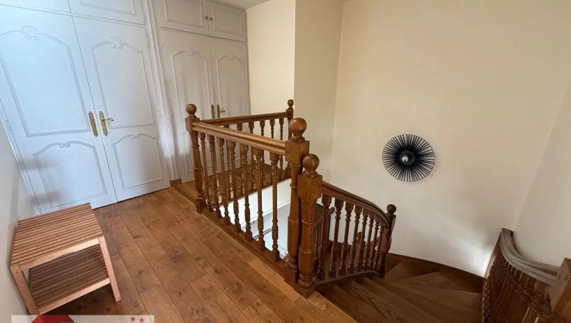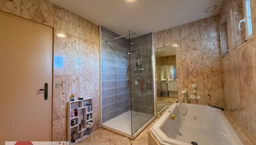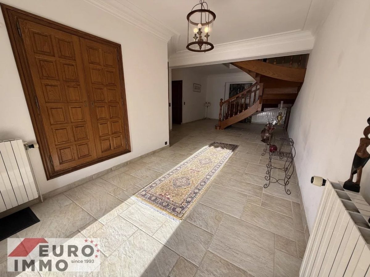 Das Untergeschoss rundet das Angebot mit einer großen Garage, einem Kellerraum und einer Werkstatt ab und bietet praktische Abstell- und Arbeitsflächen. Der Zugang zum beheizten Gemeinschaftspool und zum Tennisplatz stellt schließlich ein seltenes Extra dar, das den exklusiven Charakter dieser Immobilie unterstreicht und ihre Attraktivität für eine anspruchsvolle Klientel auf der Suche nach Komfort, Freizeitmöglichkeiten und hoher Lebensqualität zusätzlich steigert.