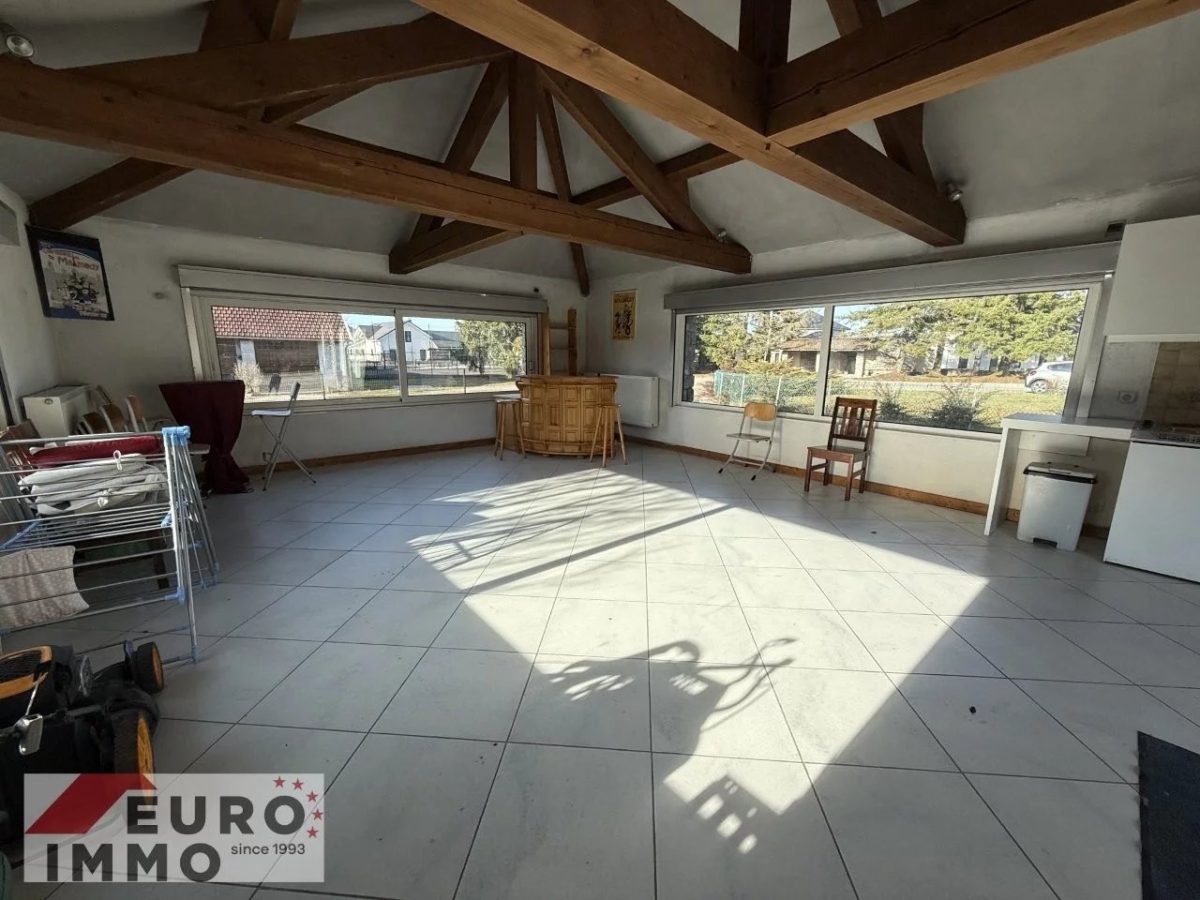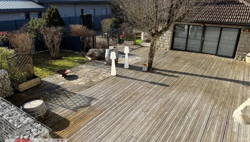 Die direkt vom Wohnbereich zugängliche Terrasse stellt einen der herausragenden Vorzüge dieser Immobilie dar. Mit 100 m² bietet sie außergewöhnlich viel Außenfläche und wird durch ein separates Nebengebäude ergänzt, das sich als Sommerküche, Spiel- oder Freizeitbereich nutzen lässt. Dieses Außenensemble ermöglicht es, die schönen Tage in einer grünen, privaten Umgebung voll auszukosten – ideal für Mahlzeiten im Freien, Empfänge sowie entspannte Stunden mit Familie und Freunden.