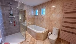 Das Duplex erstreckt sich über das Erdgeschoss und das erste Obergeschoss einer charmanten Wohnanlage und bietet eine Wohnfläche von ca. 225 m² mit großzügigen Räumen und harmonischer Raumaufteilung. Hochwertige, sorgfältig ausgewählte Materialien verleihen der Immobilie eine elegante, warme und zeitlose Atmosphäre. Ergänzt wird das Innenangebot durch besonders seltene Außenflächen und Einrichtungen: ein eingezäuntes privates Grundstück von ca. 150 m², eine großzügige Terrasse von 100 m², ein separates Nebengebäude von 46 m², das sich ideal als Freizeitraum oder Sommerküche eignet, sowie der Zugang zu einem beheizten Gemeinschaftspool (14 x 8 m) und einem Tennisplatz – Ausdruck eines außergewöhnlichen Lebensstils.
