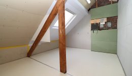 Das Dachgeschoss bietet ein ausgebautes Schlafzimmer sowie einen zusätzlichen Abstellraum, der ebenfalls zu Wohnzwecken ausgebaut werden kann und somit weiteres Potenzial bietet.