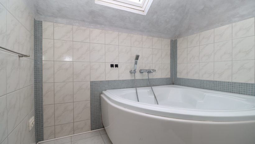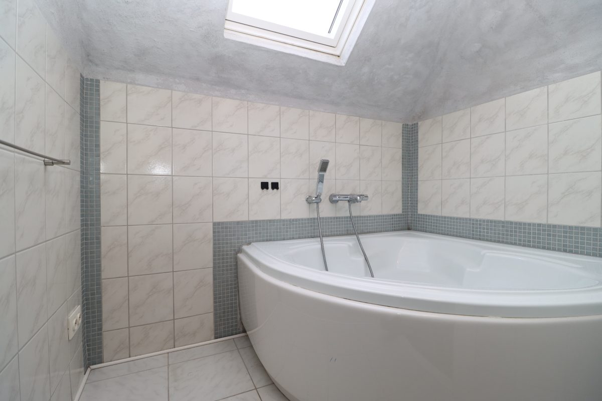 Über die Treppe erreichen Sie eine Zwischenetage mit einem kleinen Badezimmer, ausgestattet mit WC und Dusche. Im ersten Obergeschoss stehen Ihnen zwei gut geschnittene Schlafzimmer zur Verfügung. Auf dem Weg zum Dachgeschoss befindet sich eine weitere Zwischenebene mit einem zweiten Badezimmer mit Badewanne.