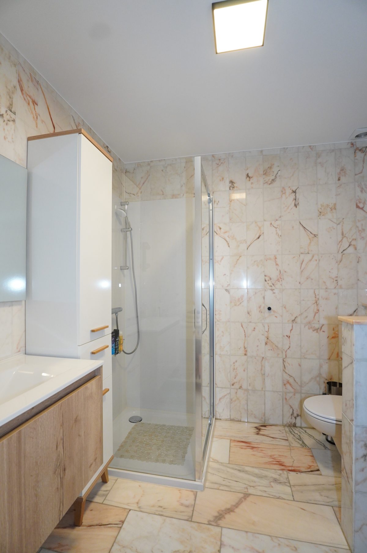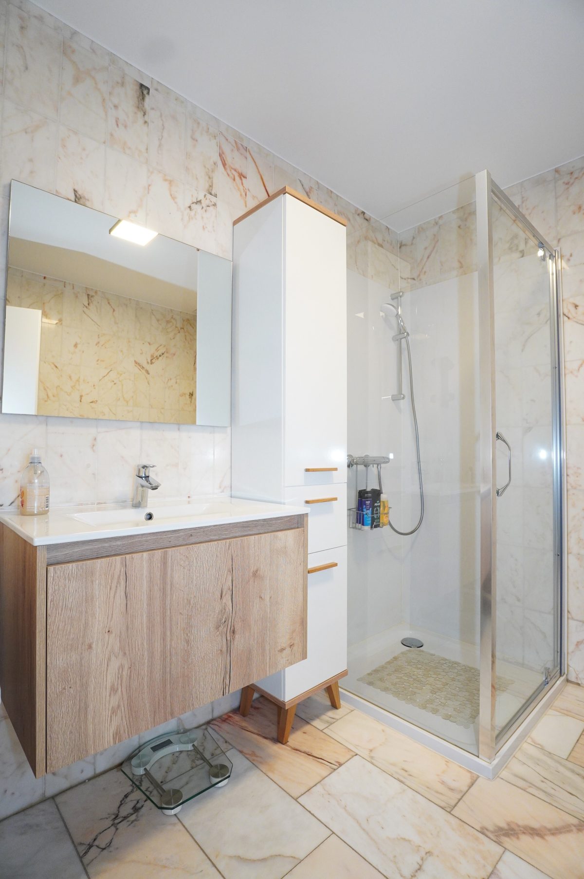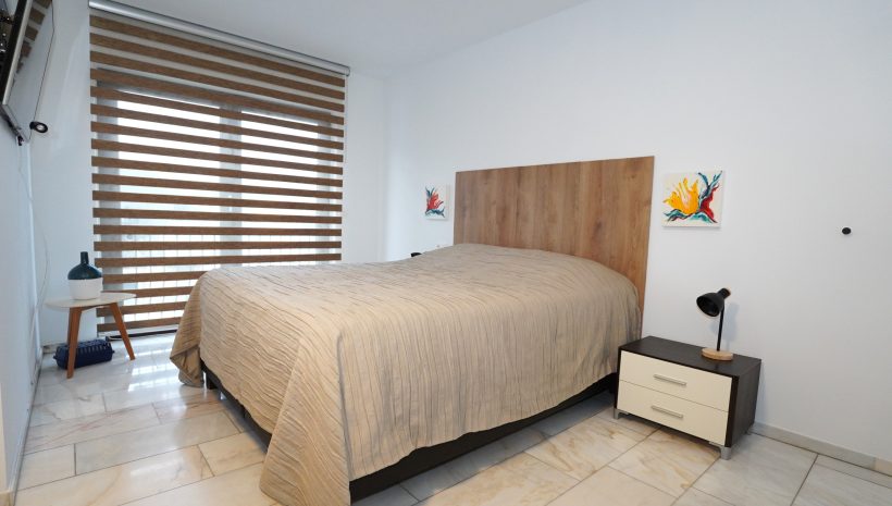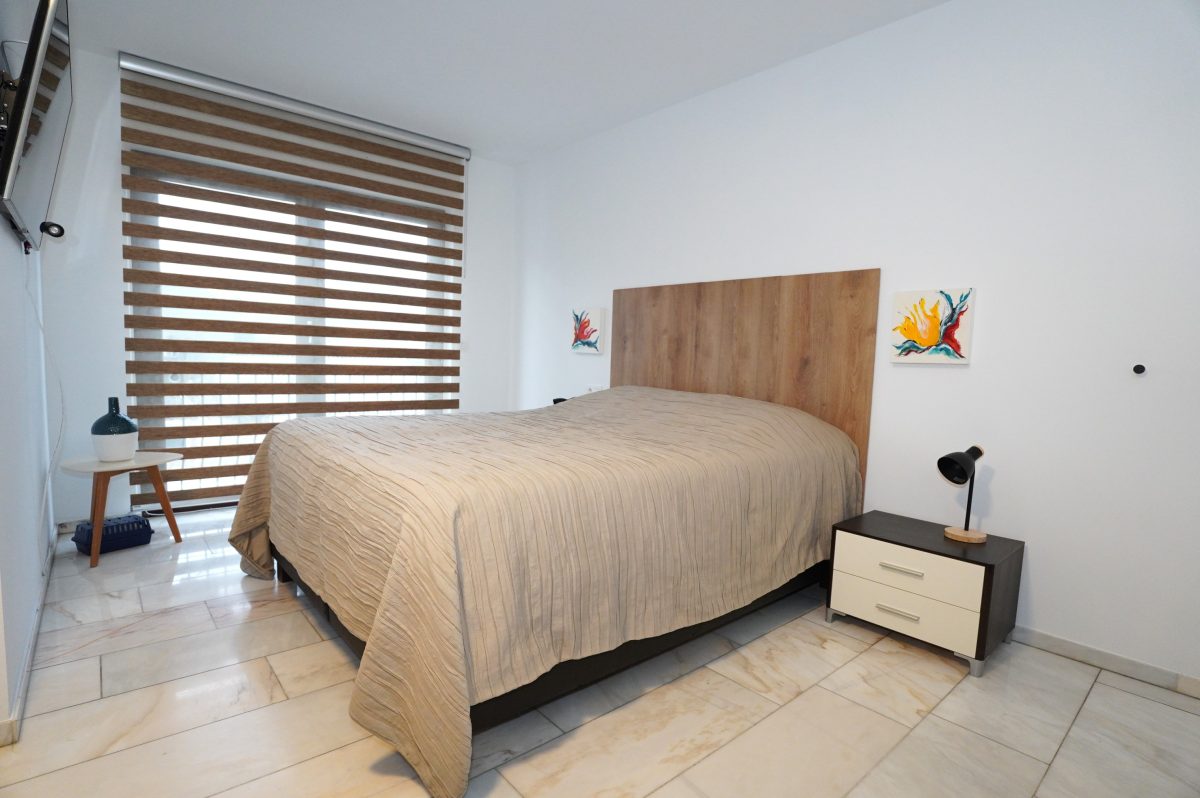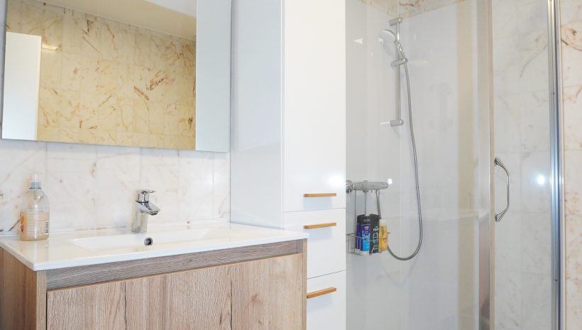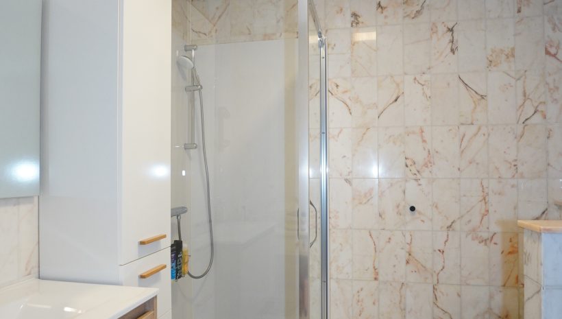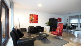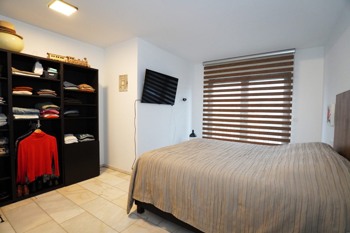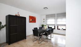 Die Wohnung besteht aus einem geräumigen und lichtdurchfluteten Wohnbereich mit offener, moderner Einbauküche. Vom Wohnzimmer aus gelangt man auf die ideal ausgerichtete, überdachte Terrasse. Der Nachtflur führt zu zwei schönen Schlafzimmern (eines davon mit maßgefertigtem Einbauschrank) sowie zu einem Badezimmer mit Dusche, Waschtisch und WC.