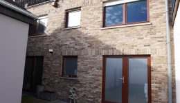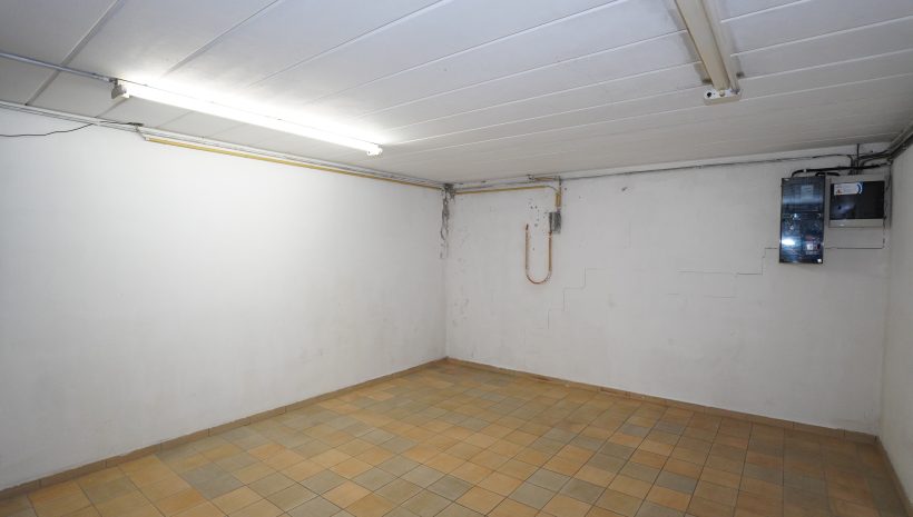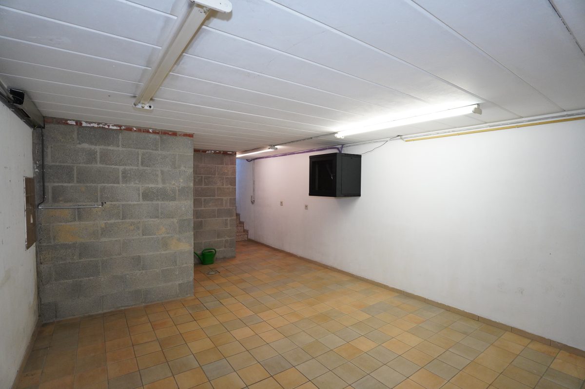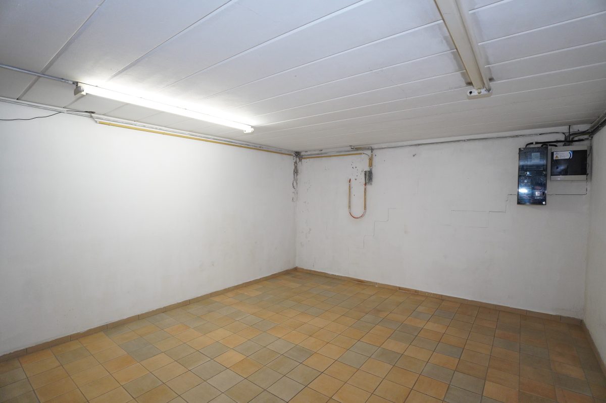 Der Keller / rückseitige Erdgeschoss ist sowohl über den Eingangsbereich als auch über den Innenhof und die hintere Terrasse zugänglich. Es umfasst zwei Kellerräume mit den verschiedenen Zählern, eine Waschküche mit Anschlüssen für Waschmaschine sowie einen großen Wohnraum, der beispielsweise als Sommerwohnzimmer genutzt werden kann und einen direkten Zugang zur Terrasse und zum Innenhof bietet. Zudem befindet sich dort der Heizungsraum mit der zentralen Ölheizung, der über den Innenhof zugänglich ist.