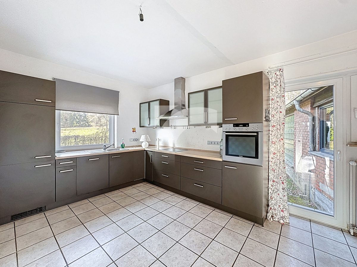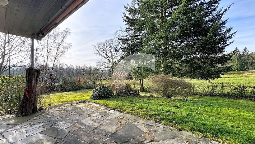 Raeren Weserbergstraße, 11: Eingebettet in eine idyllische Umgebung, in ruhiger Lage nahe der Grenze und weitgehend uneinsehbar, bietet dieses Haus aus den 1970er-Jahren ein privilegiertes Wohnumfeld auf einem wunderschönen Grundstück von ca. 2.000 m². Das Objekt ist nach Ihren Wünschen zu modernisieren. Das Erdgeschoss besteht aus einem Eingangsbereich, einem angenehmen und hellen Wohnbereich mit direktem Zugang zur Terrasse, einer Einbauküche, einem separaten WC sowie einem Schlafzimmer im Erdgeschoss. Das Untergeschoss verfügt über ein zweites Schlafzimmer, zwei Kellerräume, einen Heizraum sowie eine Garage für ein Fahrzeug. Eine ca. 50 m² große Anbaufläche (ehemaliges überdachtes Schwimmbad) vervollständigt dieses Angebot. Seltene Lage, naturnahe Umgebung und zahlreiche Gestaltungsmöglichkeiten: eine Immobilie mit bemerkenswertem Potenzial – ideal für Liebhaber von Ruhe und individuellen Wohnprojekten.