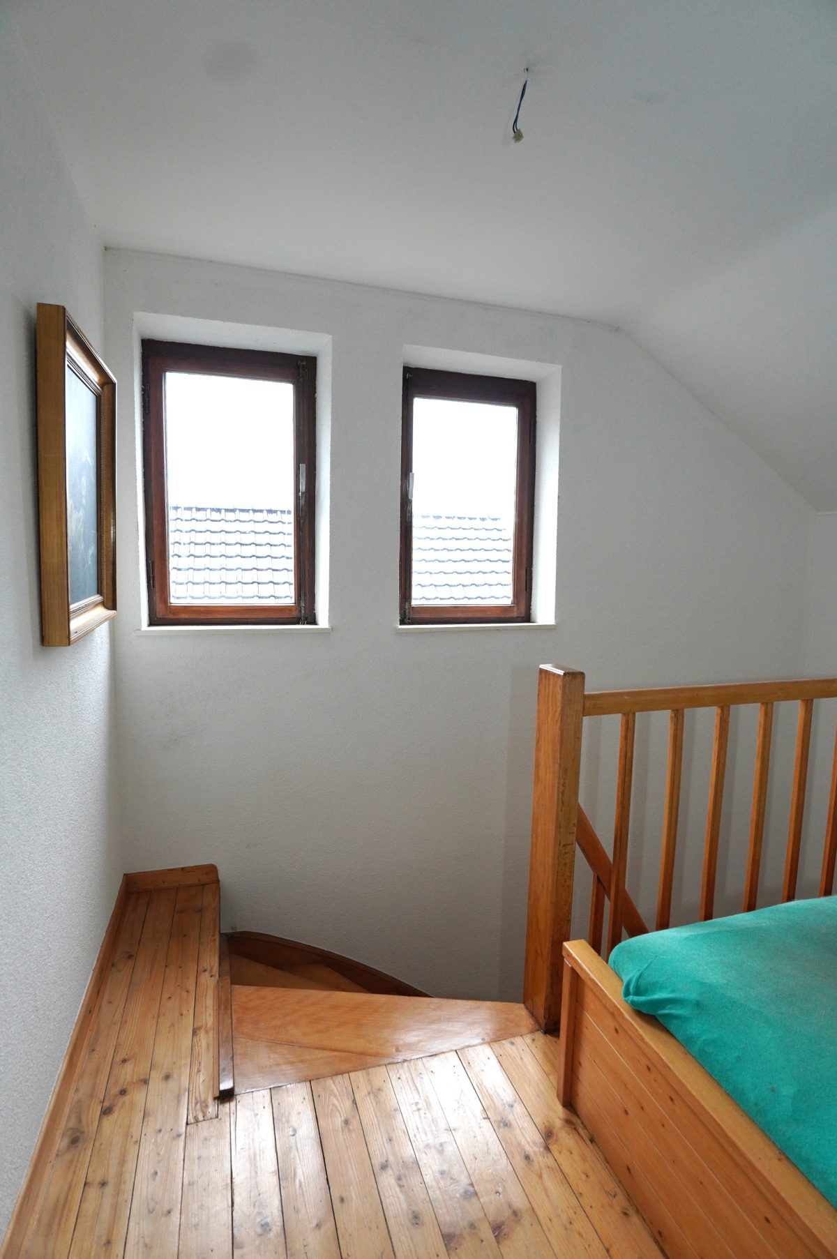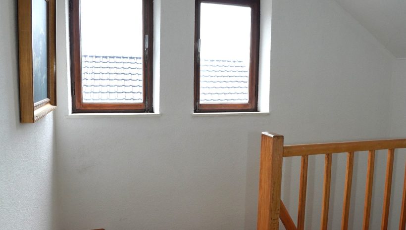 Das zweite Obergeschoss ist über das Treppenhaus erreichbar und umfasst ein Podest sowie eine vollständig ausbaubare Etage, die sich ideal zur Schaffung zusätzlicher Wohn- oder Schlafräume eignet.