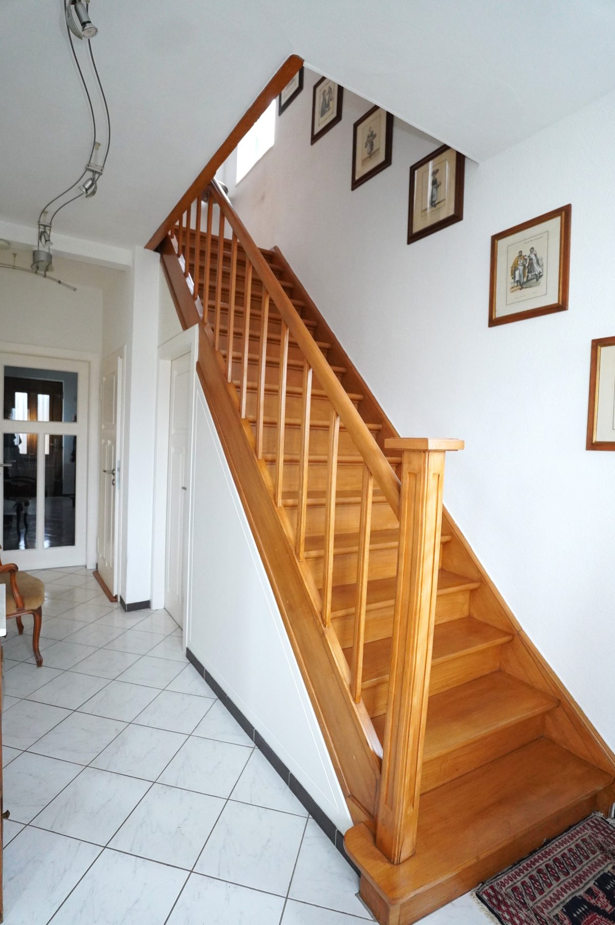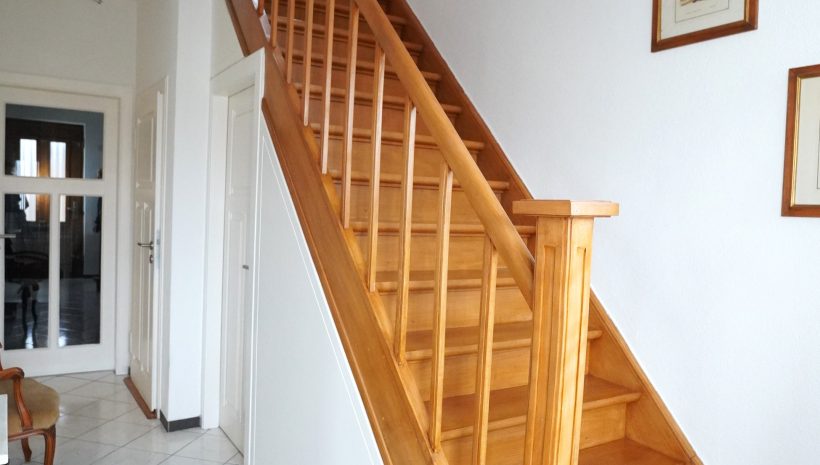 Die Fenster sind überwiegend aus PVC mit Doppelverglasung und Rollläden ausgestattet. Die Böden im Erdgeschoss sind gefliest, in den oberen Etagen mit ansprechenden Parkettböden versehen. Das isolierte Dachgeschoss ist bereits mit Fenstern ausgestattet und kann problemlos zu zusätzlichem Wohnraum ausgebaut werden. Die Beheizung erfolgt über eine zentrale Ölheizung. Die Immobilie präsentiert sich insgesamt großzügig und lichtdurchflutet.