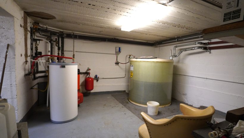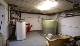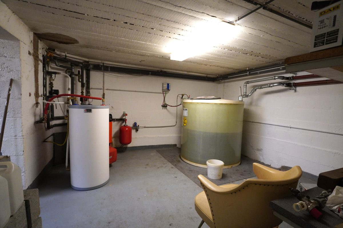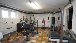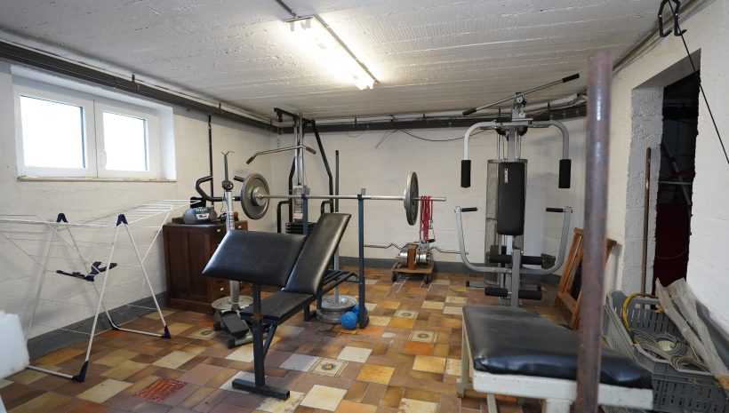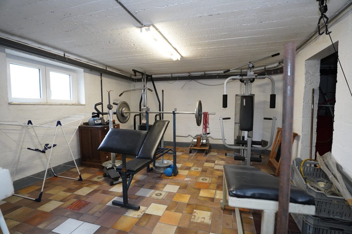 Das Untergeschoss besteht aus einem Vorraum mit Treppe, einem großen Hobby- oder Fitnesskeller mit Fenstern, einem Heizkeller mit Öltank und zentraler Ölheizung sowie einem weiteren Abstellkeller.