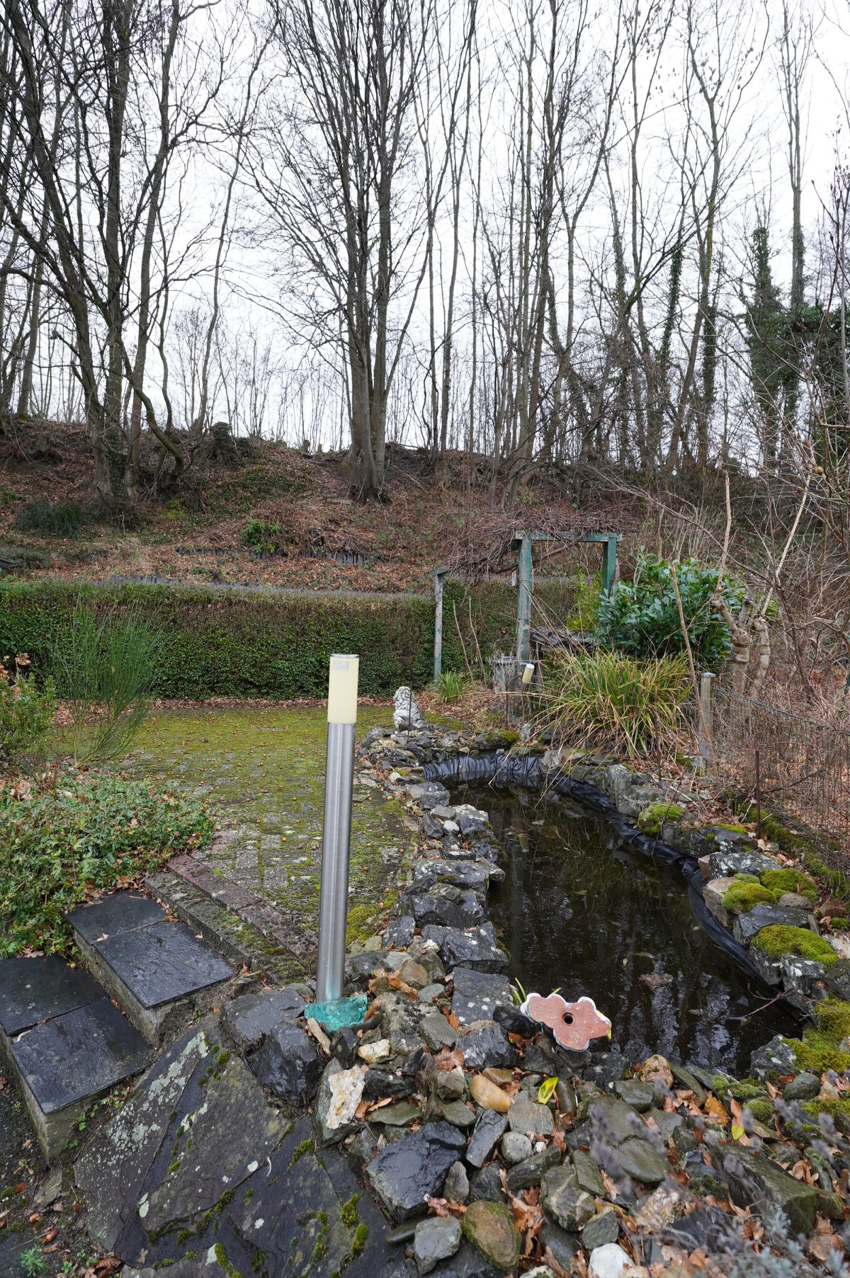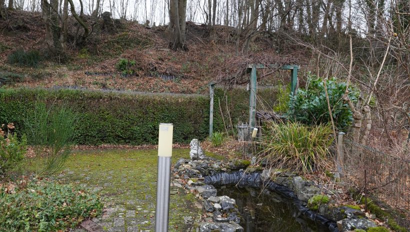 Im Außenbereich verfügt das Haus über eine an die Küche angrenzende Terrasse sowie über eine weitere Terrasse mit dekorativ angelegtem Teich im hinteren Bereich des Grundstücks entlang der Linie 38, um die Sonneneinstrahlung optimal zu genießen.