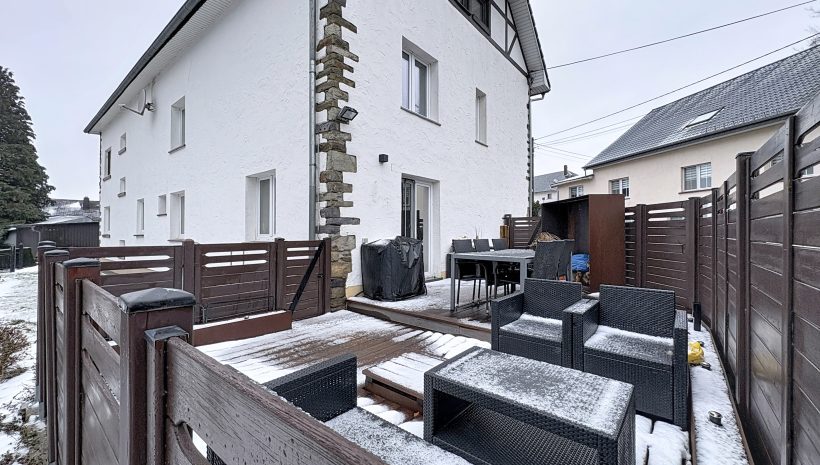 Immo Weiss & Faber präsentiert Ihnen diese im Jahr 2021 renovierte Haushälfte mit drei Schlafzimmern auf einem 130 m² großen Grundstück in Meyerode (Gemeinde Amel).
