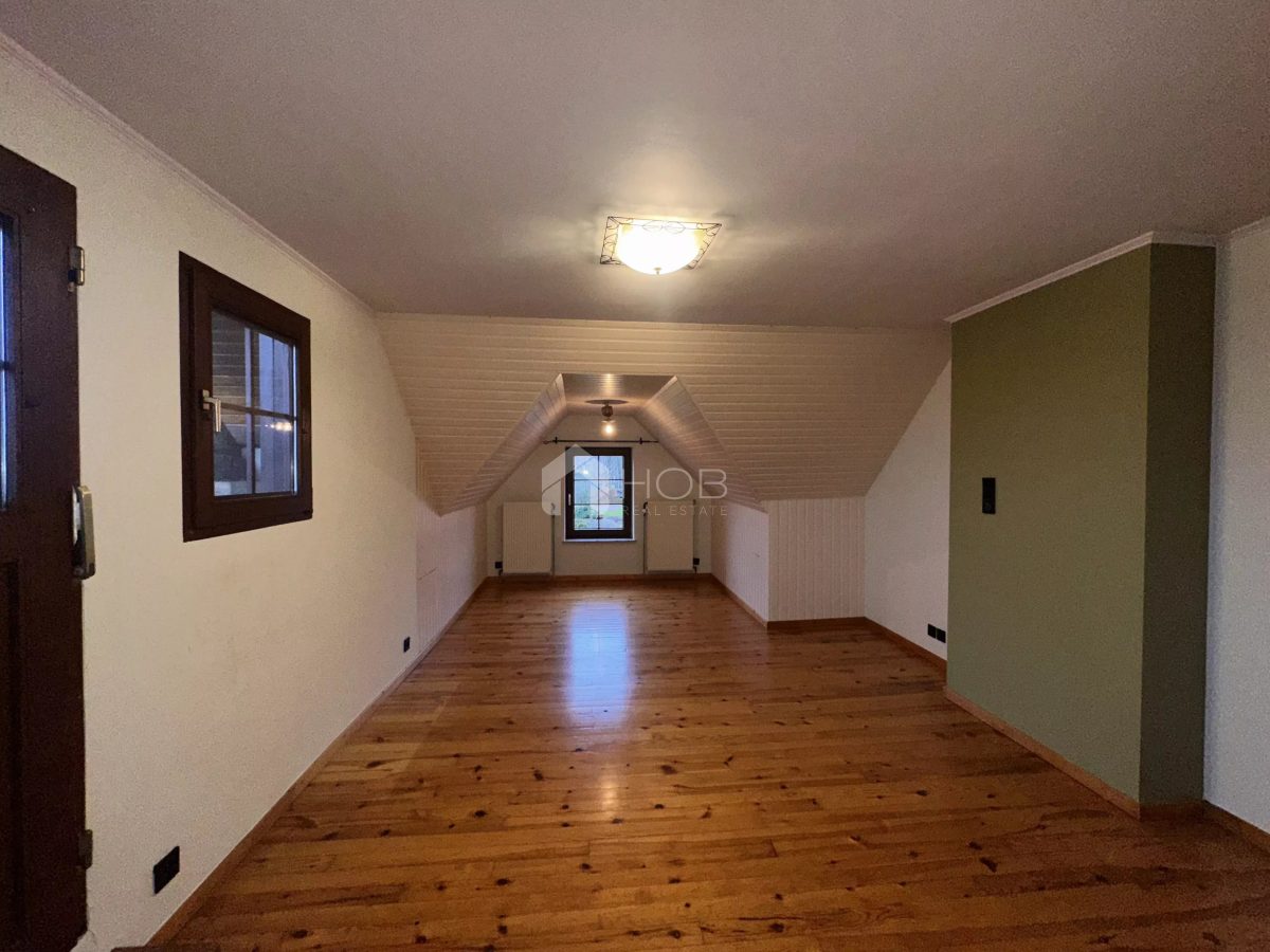 Dieses massiv gebaute Einfamilienhaus aus 1987 vereint hochwertige Materialien, viel Platz und eine idyllische Wohnlage. Die Klinkerfassade, das Schieferdach und die großzügigen Fensterfronten verleihen dem Haus ein zeitloses und gepflegtes Erscheinungsbild.