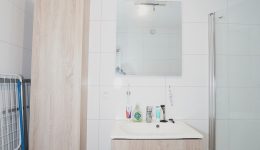 Die Böden sind mit Fliesen ausgestattet (in der Diele, im Badezimmer und in der Waschküche) sowie mit Laminat in den Wohnräumen. Die Fenster sind aus PVC mit Dreifachverglasung. Die Beheizung erfolgt über eine Gaszentralheizung. Im Gebäude befindet sich zudem eine kontrollierte Wohnraumlüftung mit Wärmerückgewinnung (Doppelfluss-Lüftung / VMC).