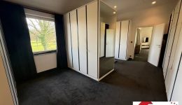 Im Obergeschoss entfaltet sich der private Rückzugsbereich. Vom zentralen Flur aus gelangen Sie in den separat konzipierten Elternbereich, der mit einem außergewöhnlich großzügigen Ankleidezimmer von ca. 26 m² mit Einbauschränken und Teppichboden begeistert. Das angrenzende, rund 20 m² große Schlafzimmer überzeugt mit wohltuender Ruhe und schönem Weitblick. Das stilvoll gestaltete Badezimmer mit freistehender Whirlpool-Badewanne, Waschbecken sowie einem separaten Bereich mit Dusche, WC und Bidet präsentiert sich als elegante Wohlfühloase mit harmonischem Ambiente. Der Kinder- oder Gästebereich mit Teppichboden umfasst zwei Schlafzimmer von etwa 15 m² und 12 m² sowie ein modernes Bad von ca. 8 m².