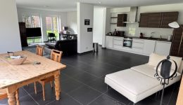 Nutzfläche (m2): 122 m²Großer Wohnzimmer mit moderner Einbauküche.