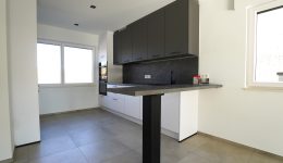Der einladende, halb offene Eingangsbereich bietet Zugang zu allen Wohnräumen. Das helle und geräumige Wohnzimmer geht offen in die wunderschöne, neue und vollständig ausgestattete Küche über. Zudem verfügt das Haus über zwei schöne Schlafzimmer sowie ein Badezimmer mit ebenerdiger Dusche, WC und Waschbeckenmöbel.