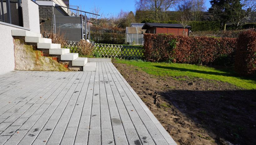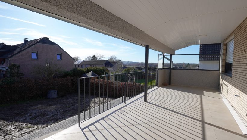 Die großzügige, überdachte Terrasse ist über eine doppelte Schiebetür erreichbar und führt zur zweiten Terrasse sowie in den schönen, nach Süden ausgerichteten Garten mit optimaler Sonneneinstrahlung.