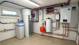 Das Untergeschoss umfasst ein großes Büro/Hobbyraum oder einen anderweitig nutzbaren Raum mit viel Tageslichteinfall, ein zweites Duschbad mit Dusche, Waschbecken, WC und Anschlüssen für eine Waschmaschine, einen Technikraum mit neuer Wärmepumpe, thermodynamischem Boiler für Warmwasser und Entkalker, eine große Garage mit elektrischem Garagentor sowie einen Abstellraum mit den Zählern und Wechselrichtern.