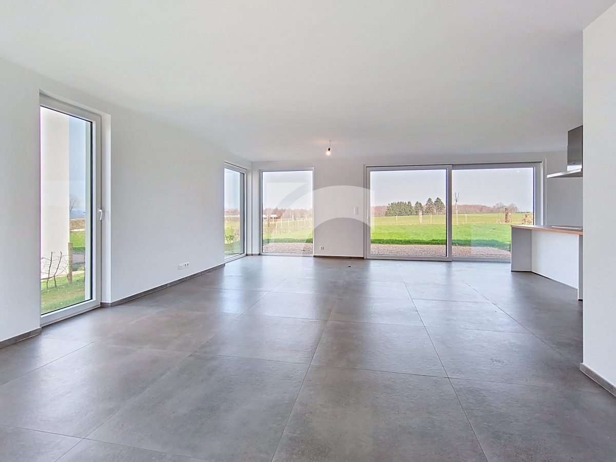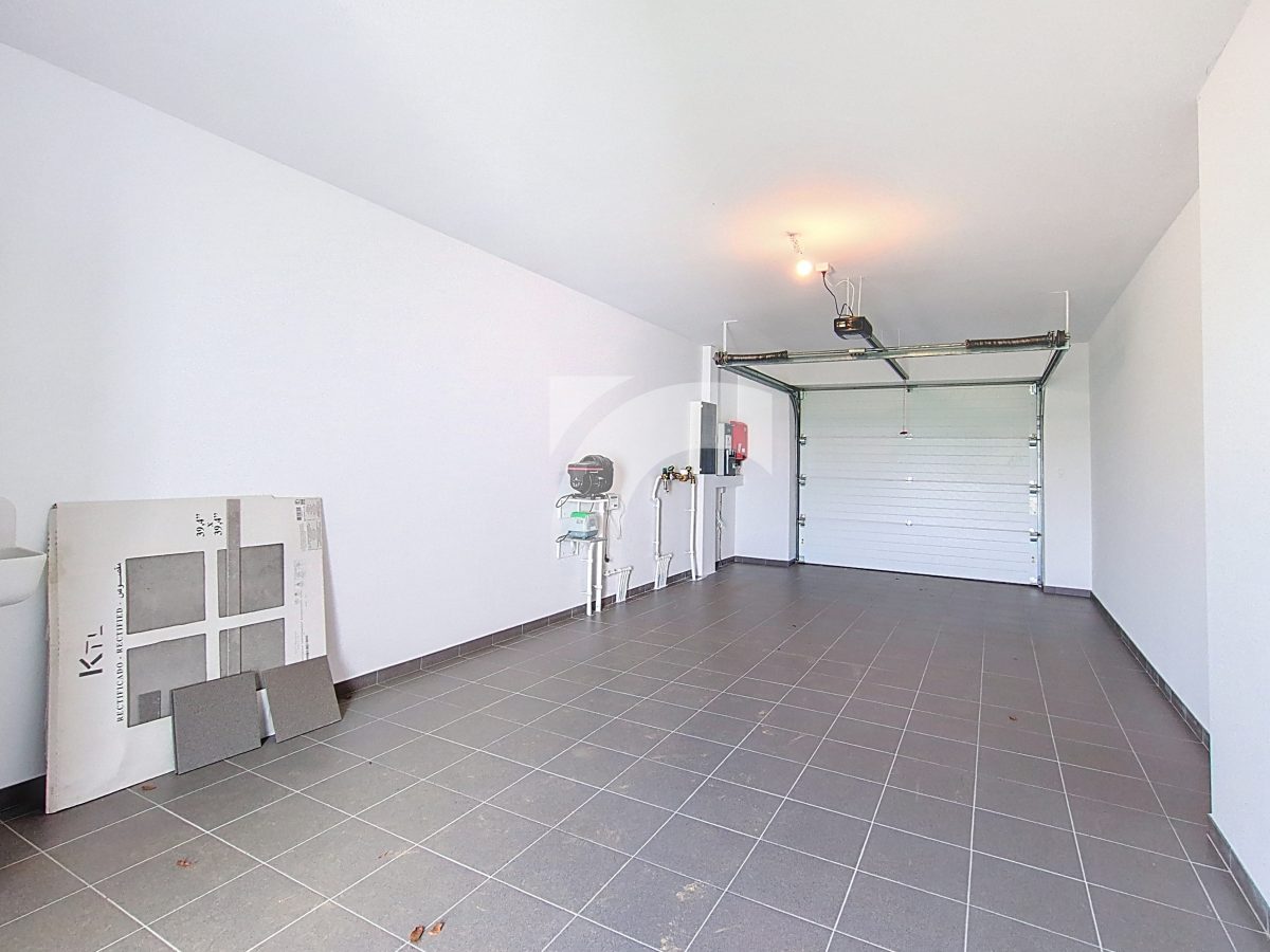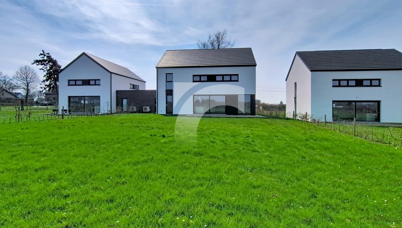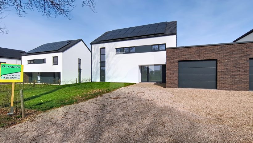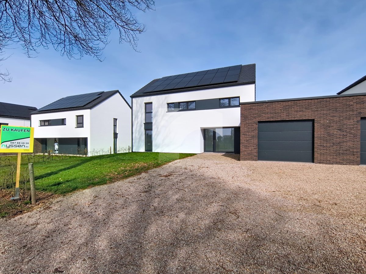 Elsenborn Lagerstraße, 34A: Dieses neue, moderne Null-Energie-Haus befindet sich in ruhiger, ländlicher Lage auf einem schönen, großzügigen Grundstück. Das Haus bietet einen hellen und großzügigen Wohn- und Essbereich mit moderner Einbauküche, ein großes Elternschlafzimmer mit Ankleidezimmer, drei weitere Schlafzimmer, ein hochwertig ausgestattetes Badezimmer, eine praktische Waschküche sowie einen isolierten und ausbaufähigen Dachboden. Die hochwertige Ausstattung sorgt für modernen Wohnkomfort und hohe Energieeffizienz: Fußbodenheizung (Erdgeschoss sowie Badezimmer im Obergeschoss) über Wärmepumpe, Photovoltaikanlage, einflutige Lüftung Typ C, Regenwassertank, PVC-Fenster mit Doppelverglasung sowie eine Garage mit motorisiertem Tor. Das Erdgeschoss und das Badezimmer sind elegant mit großen Fliesen ausgestattet, während die Schlafzimmer und der Flur mit warmem Parkett ausgelegt sind. Der gepflegte Außenbereich mit Rasenfläche, Hecken, Steinbelag vor dem Haus und einer geschotterten Terrasse. Ein perfekt durchdachtes Zuhause, das modernes Wohnen, Nachhaltigkeit und Familienfreundlichkeit ideal miteinander verbindet.