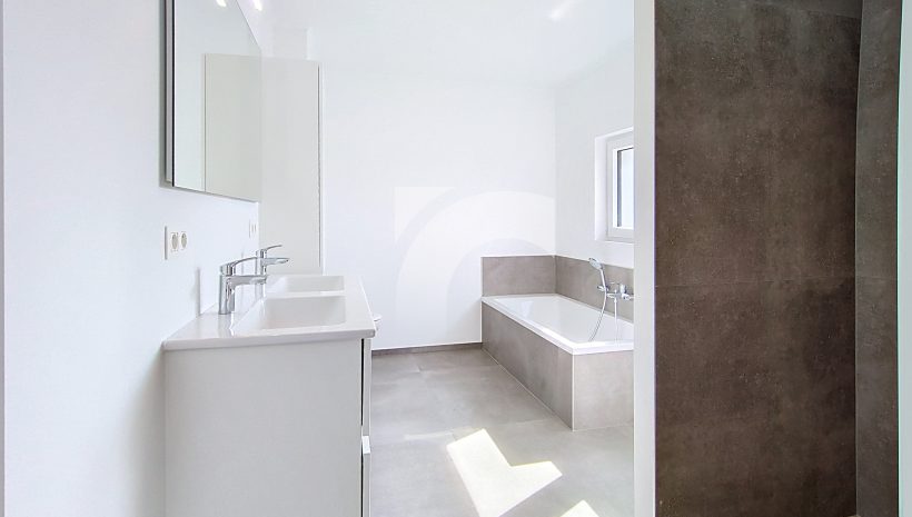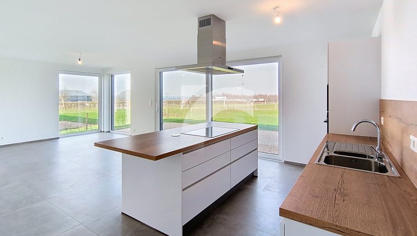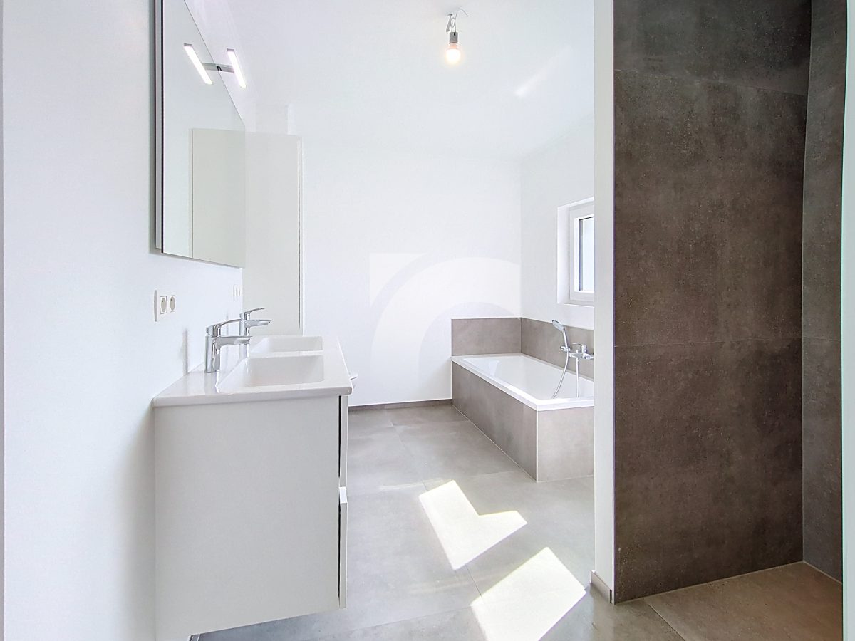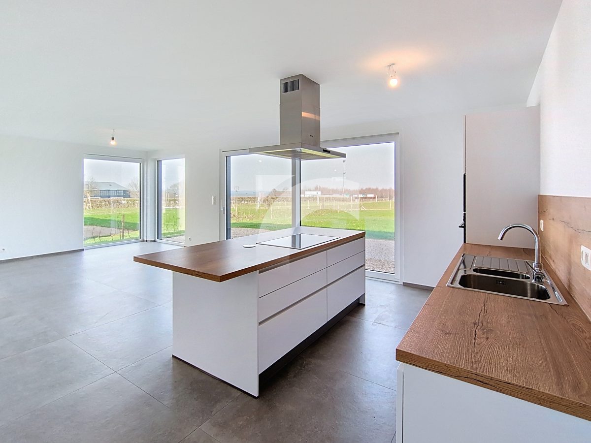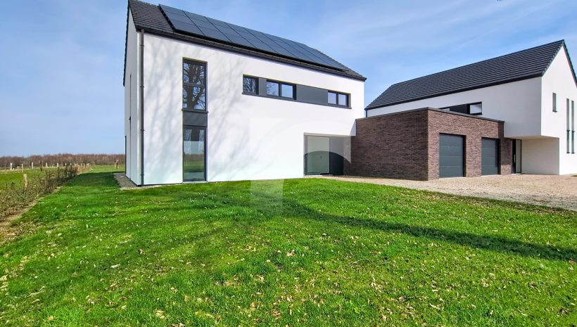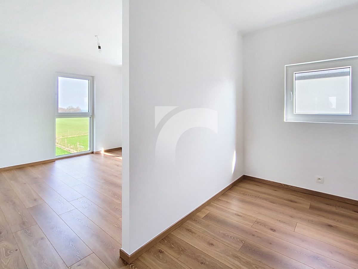 Elsenborn Lagerstraße, 34A: Dieses neue, moderne Null-Energie-Haus befindet sich in ruhiger, ländlicher Lage auf einem schönen, großzügigen Grundstück. Das Haus bietet einen hellen und großzügigen Wohn- und Essbereich mit moderner Einbauküche, ein großes Elternschlafzimmer mit Ankleidezimmer, drei weitere Schlafzimmer, ein hochwertig ausgestattetes Badezimmer, eine praktische Waschküche sowie einen isolierten und ausbaufähigen Dachboden. Die hochwertige Ausstattung sorgt für modernen Wohnkomfort und hohe Energieeffizienz: Fußbodenheizung (Erdgeschoss sowie Badezimmer im Obergeschoss) über Wärmepumpe, Photovoltaikanlage, einflutige Lüftung Typ C, Regenwassertank, PVC-Fenster mit Doppelverglasung sowie eine Garage mit motorisiertem Tor. Das Erdgeschoss und das Badezimmer sind elegant mit großen Fliesen ausgestattet, während die Schlafzimmer und der Flur mit warmem Parkett ausgelegt sind. Der gepflegte Außenbereich mit Rasenfläche, Hecken, Steinbelag vor dem Haus und einer geschotterten Terrasse. Ein perfekt durchdachtes Zuhause, das modernes Wohnen, Nachhaltigkeit und Familienfreundlichkeit ideal miteinander verbindet.