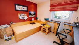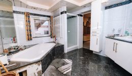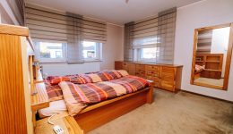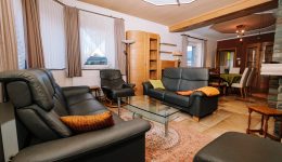Die angrenzende Wohnung überzeugt durch ihre Großzügigkeit und ihren Wohnkomfort. Sie verfügt über ein helles Wohnzimmer mit offenem Kamin, eine Einbauküche, vier Schlafzimmer sowie ein Badezimmer mit Badewanne, Dusche und Waschbecken und eine separate Toilette. Ein besonderer Vorteil: Das gesamte Mobiliar der Wohnung ist im Kaufpreis enthalten.