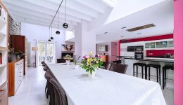 Mit einer großzügigen Wohnfläche von 264 m² bietet diese Immobilie reichlich Platz für die ganze Familie. Insgesamt fünf geräumige Schlafzimmer schaffen vielfältige Nutzungsmöglichkeiten – ob als Rückzugsort, Homeoffice oder Gästezimmer.