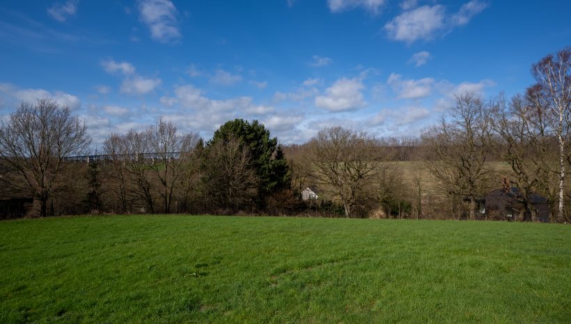 Ruhig gelegenes Baugrundstück in der Bachstraße zwischen Moresnet und Kelmis mit einer Fläche von 978 m². Durch die Lage auf einer leichten Anhöhe bietet sich ein schöner Ausblick über die Umgebung, wobei auch das Viadukt von Moresnet sichtbar ist.