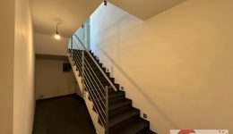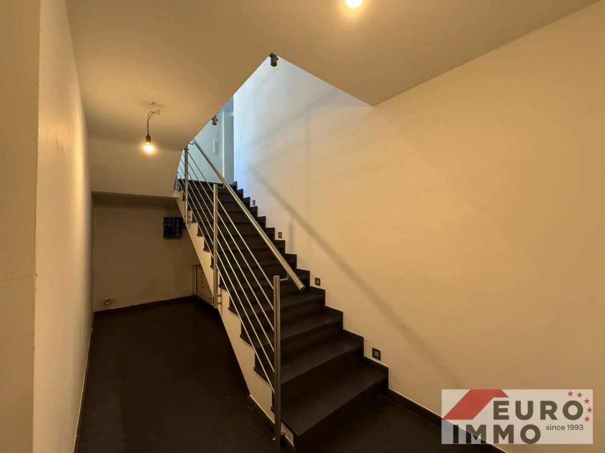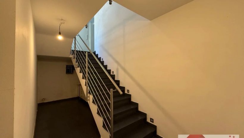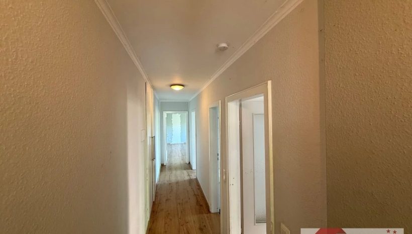 Die Steintreppe führt weiter ins lichtdurchflutete Garten-Erdgeschoss, das den Hauptwohnbereich beherbergt. Ein zentraler Flur (ca. 10 m²) öffnet sich über eine große Glastür zu einem Balkon (ca. 6 m²) mit Blick auf den Vorhof – ein sonnendurchfluteter Platz, der bereits morgens das Haus mit Helligkeit erfüllt.
