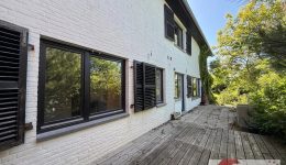 Mit einer Wohnfläche von rund 250 m² öffnet sich dieses zuerst errichtete Gebäude wie ein ruhiger Rückzugsort, der viel Raum zur freien Entfaltung lässt. Zwei klar getrennte Ebenen gliedern das Haus auf angenehme Weise: eine Nutzebene im straßenseitigen Eingangsgeschoss und eine Wohnebene im gartenseitigen Erdgeschoss, die sich zur grünen Umgebung hin öffnet – ganz im Einklang mit der Natur.