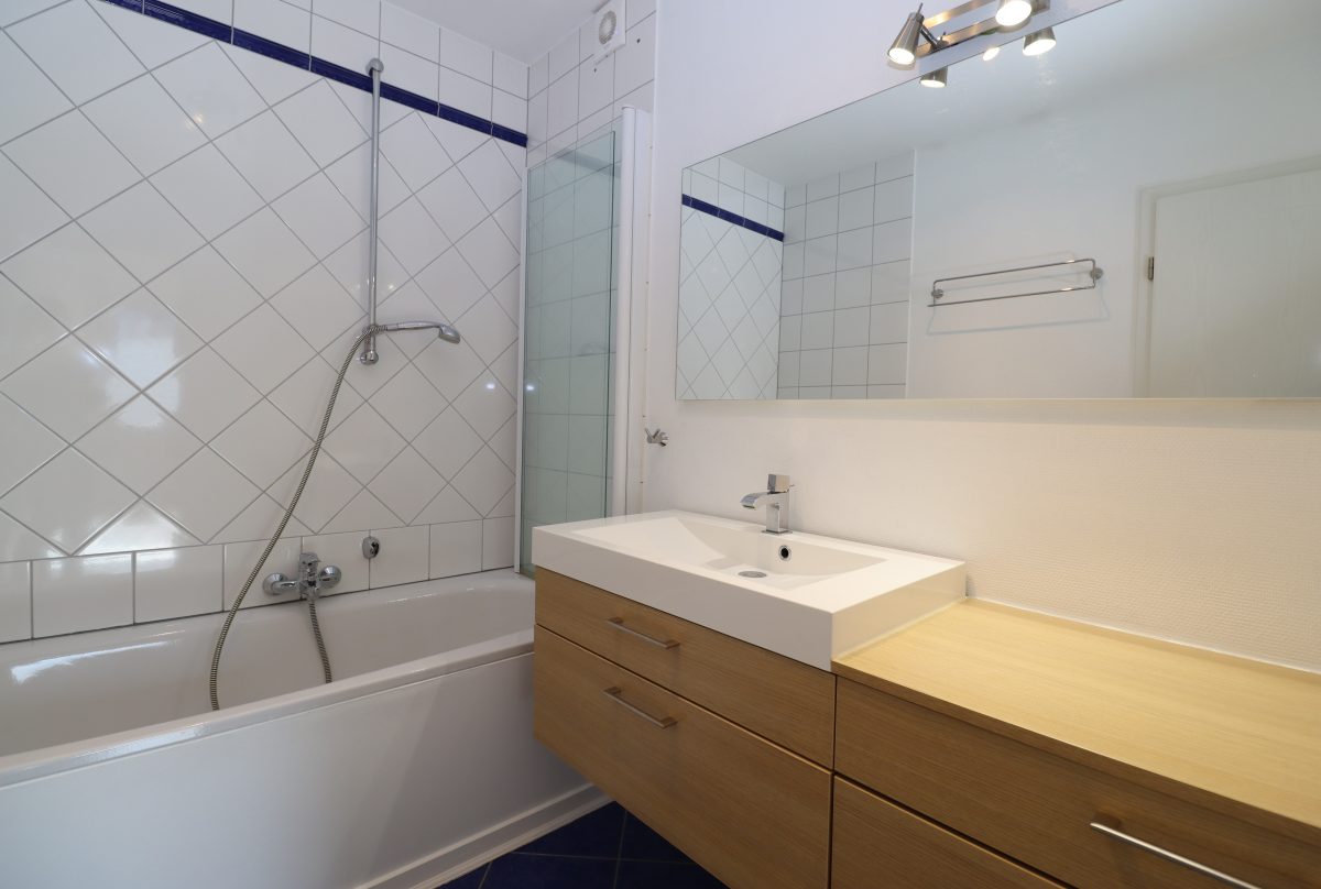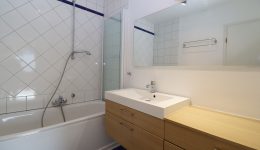 Die Wohnung ist wie folgt aufgeteilt: Ein helles Wohnzimmer, eine vollausgestattete Küche, ein Schlafzimmer, ein Badezimmer sowie ein separates WC. Ein Abstellraum bietet zusätzlichen Stauraum (hier befinden sich die Anschlüsse für die Waschmaschine).