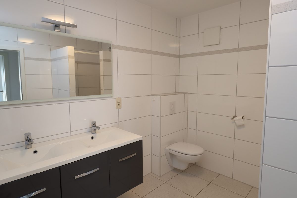 Die Wohnung verfügt über drei Schlafzimmer, von denen sich eines ideal als Büro, Hobbyraum oder Ähnliches nutzen lässt, ganz nach Ihren individuellen Bedürfnissen. Das Badezimmer ist mit einem Doppelwaschbecken, einer Toilette und einer Dusche ausgestattet.