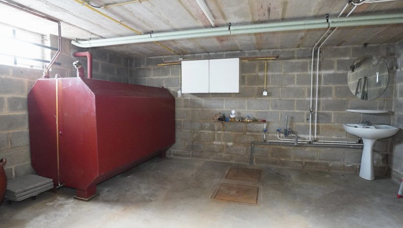 Der Keller besteht aus einer großen Garage mit elektrischem Toröffner sowie einer Waschküche mit Anschlüssen für eine Waschmaschine, einer Ölheizung und einem Öltank.